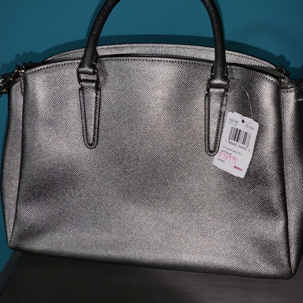 Coach purse Metallic Sage Carryall. Can be a tote or shoulder purse(strap is detachable) Brand New with tags attached. Retail $395. Asking $250 OB0. Just reduced to $120.00!