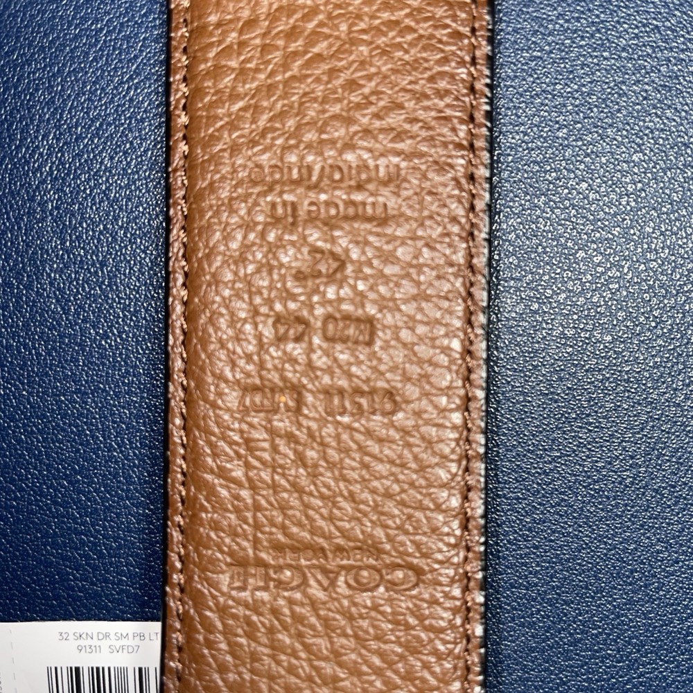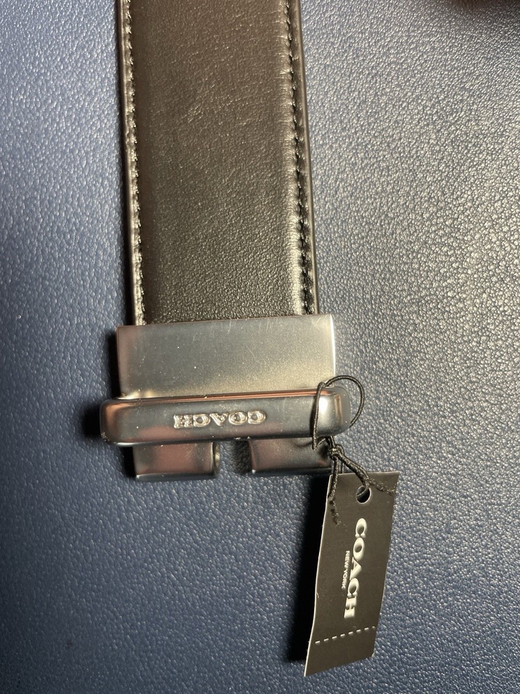Authentic Coach men’s reversible leather belt featuring smooth black leather on one side and brown pebbled leather on the other. Finished with a brushed silver-tone plaque buckle and Coach branding. Interior stamped with Coach style number and size. Includes original tag. Condition: Very good overall cosmetic condition and appears unworn; however, the buckle is missing the metal prong/tongue piece that goes through the belt holes. Belt will need repair or replacement buckle hardware to be wearable. No cracking or major leather damage. Details: Brand: Coach New York Style: F7511 Size: 42 Material: Genuine leather Color: Black / Brown reversible Buckle: Brushed silver plaque (missing prong) Made in India Great replacement project piece or for parts. Thanks for looking! Feel free to message anytime with questions.