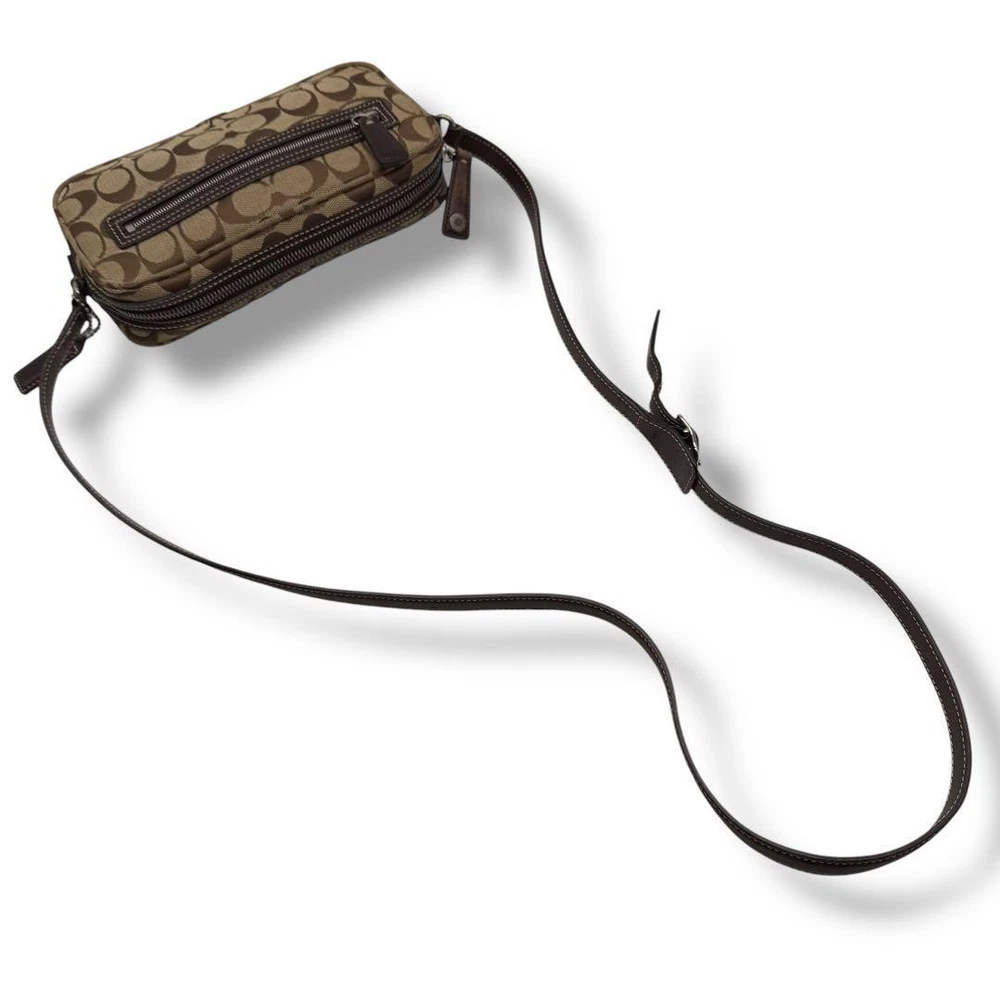 Coach Canvas Crossbody Bag Brown Authentic Mini Shoulder Purse Key Features ## Product Overview This is an authentic Coach canvas crossbody bag in a stylish brown color. Designed for everyday use, this compact shoulder purse combines practicality with classic Coach craftsmanship. ## Key Features and Benefits - Authentic Coach bag made from durable canvas material - Compact size ideal for daily essentials - Features multiple pockets for organized storage - Stylish brown exterior suitable for various outfits - Authenticity verified, ensuring genuine quality ## Technical Specifications and Details - Brand: Coach - Category: Bags - Exterior Material: Canvas - Exterior Color: Brown - Size: Approximately 10 inches (25 cm) in height, 22 inches (56 cm) in width, with a 5-inch (13 cm) gusset - Shoulder Strap Height: 53 cm (approximate) - Condition: Excellent with no noticeable scratches or stains; minor wear on edges (see condition details below) - Pockets: One external zipper pocket, one internal open pocket - Hardware Color: Silver-tone - Closure: Not specified - Pattern: Solid color - Shape: Rectangular crossbody - Country of Manufacture: Not specified - Authenticity: Confirmed, ready for use ## Product Condition This bag is in very good condition with no significant scratches or stains. There are some minor edge chips (edge wear) on the piping, but it does not affect the overall durability or appearance. The bag has been carefully inspected and is suitable for continued use. ## Main Selling Points - Genuine Coach product with verified authenticity - Made from high-quality canvas for durability - Compact and lightweight design perfect for daily use - Multiple pockets for convenient organization - Classic brown color complements various styles - Well-maintained condition with minor signs of use ## Additional Information This Coach crossbody bag offers a reliable and stylish option for those seeking a genuine designer accessory. Its practical size and thoughtful features make it suitable for everyday wear or as a collectible item for Coach enthusiasts. Specifications Brand Coach Country Japan Style Woman Bag Department Woman Theme Bag California Prop 65 Warning No Product Description Item Title Coach Shoulder Bag Canvas Crossbody Mini Brown Payment Supports managed payments Please pay within 5 days after auction is finished. About Us We are located in Japan. It's our pleasure to make you happy by proposing our recommend item. If you have any questions or request about items, please feel free to ask us. International Buyers - Please Note: -Import duties, taxes, and charges are not included in the item price or shipping charges. These charges are the buyer's responsibility. -Please check with your country's customs office to determine what these additional costs will be prior to bidding/buying. -These charges are normally collected by the delivering freight (shipping) company or when you pick the item up - do not confuse them for additional shipping charges. -We do not mark merchandise values below value or mark items as - gifts - The US and International government regulations prohibit such behavior. Thank you for your understanding.
