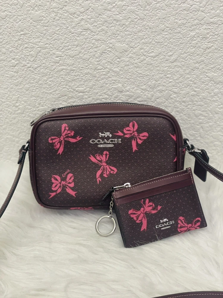 Coach Mini Skinny Id Case With Bow Print Brand new with tags 100% Authentic Style Number CZ460 Measurements Length: 4.25" Height: 3.0" Width: 0.5" Materials Printed coated canvas Fabric lining Features Two credit card slots Zip-top closure Attached split key ring Additional Details ID window Only sale Mini Skinny Id Case Available for Jamie crossbody bag Price is firm