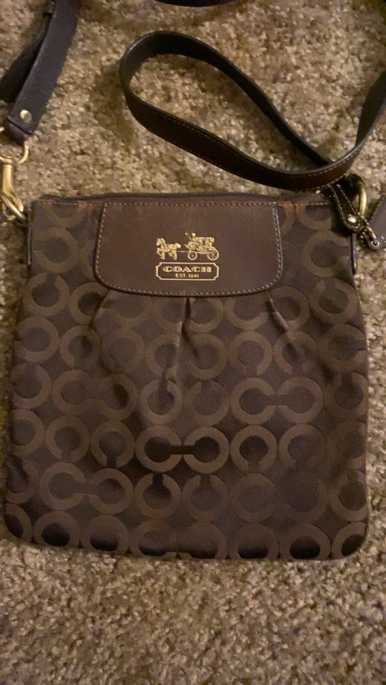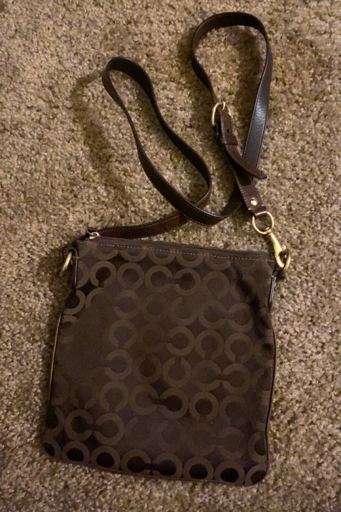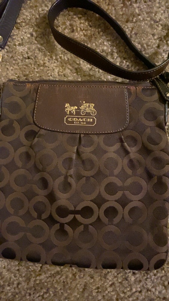 Crafted with the modern woman in mind, the Coach Monogram File American Crossbody Bag combines timeless style with practical design. Its rich brown leather exterior and classic monogram pattern exude elegance, while the small size ensures it's the perfect accessory for your daily essentials. The bag features a secure zip closure to keep your belongings safe, complemented by a charming bag charm for an added touch of sophistication. Whether you're running errands or enjoying an evening out, this Coach crossbody bag is a versatile addition to any wardrobe.