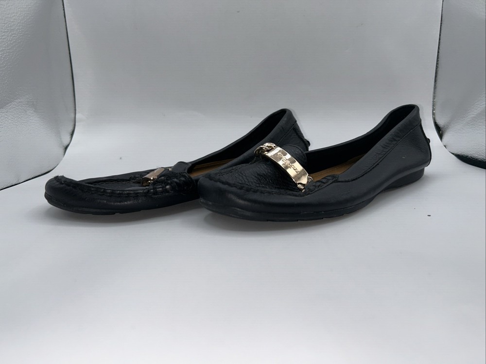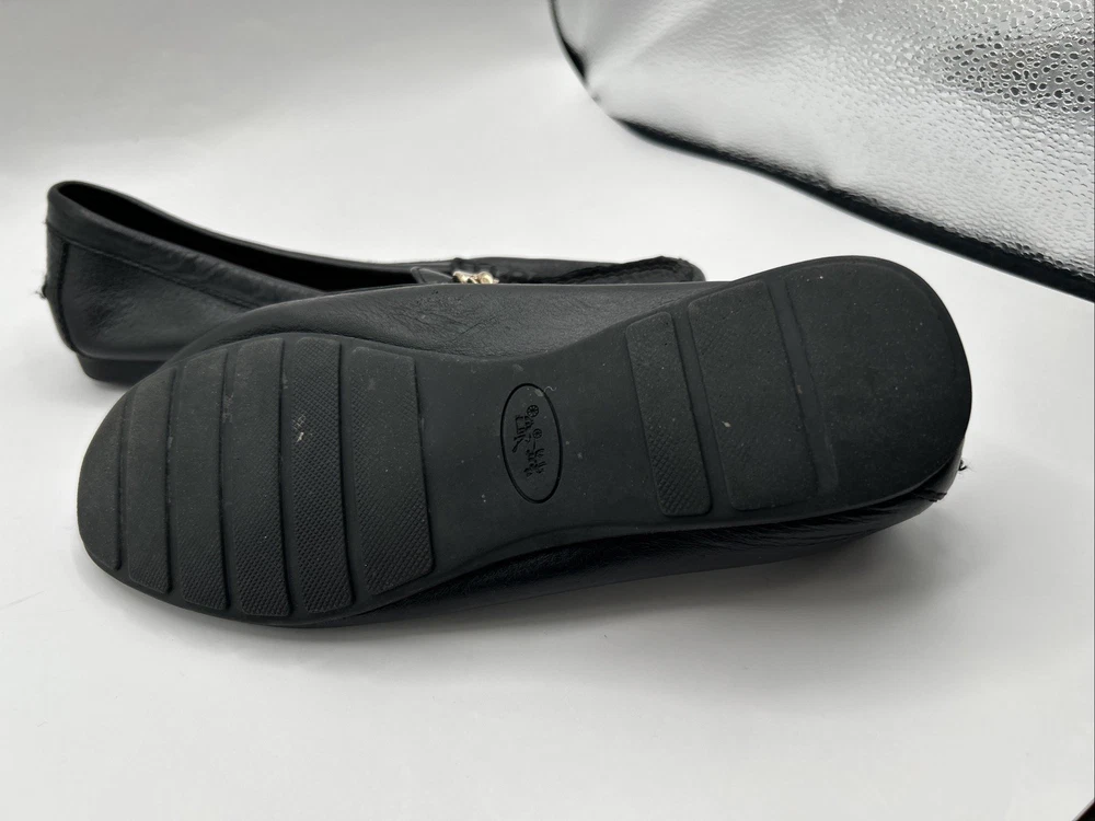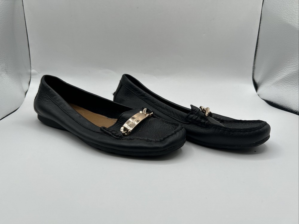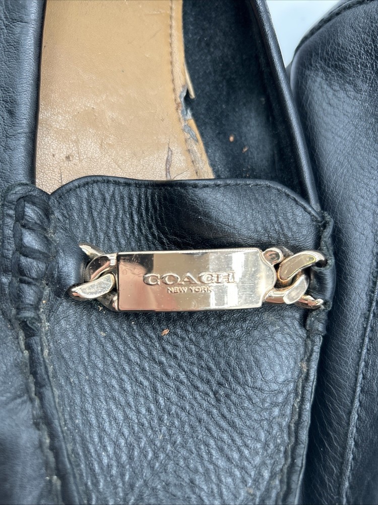 Coach Women's Olive Black Pebble Grain Leather Loafer Flats Size 8 B *Read* Pre-owned. Outside in good condition. Inside liner is peeling as shown. See pictures.