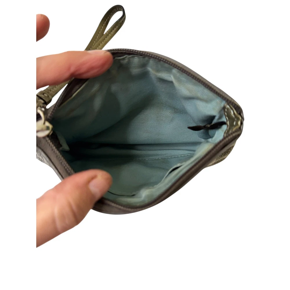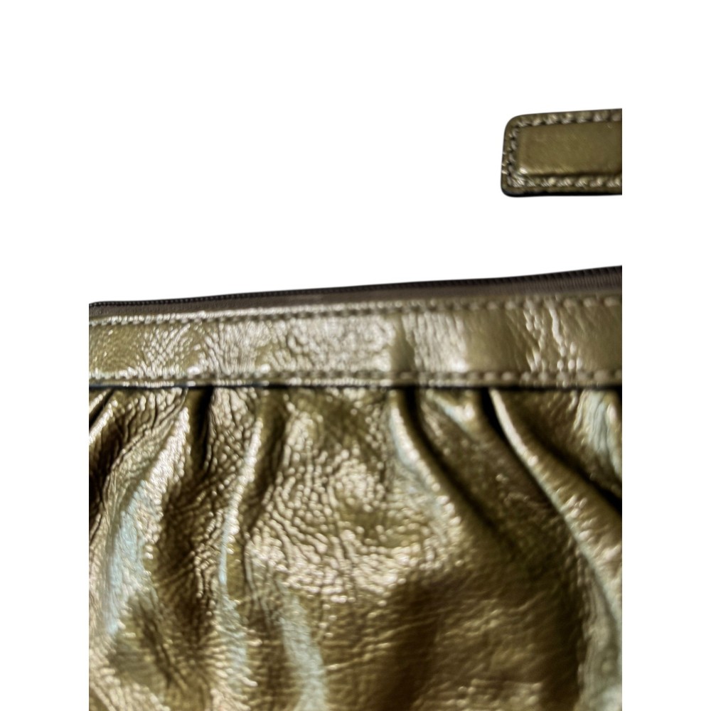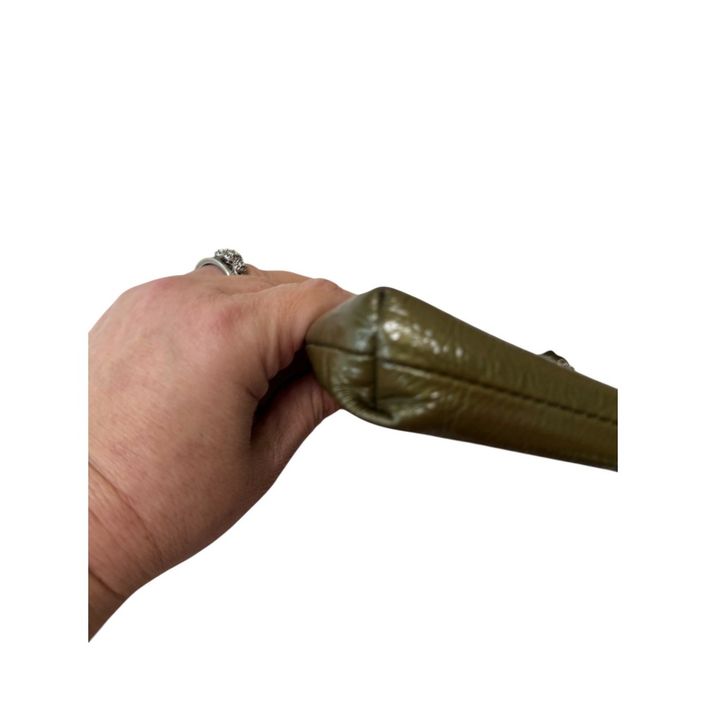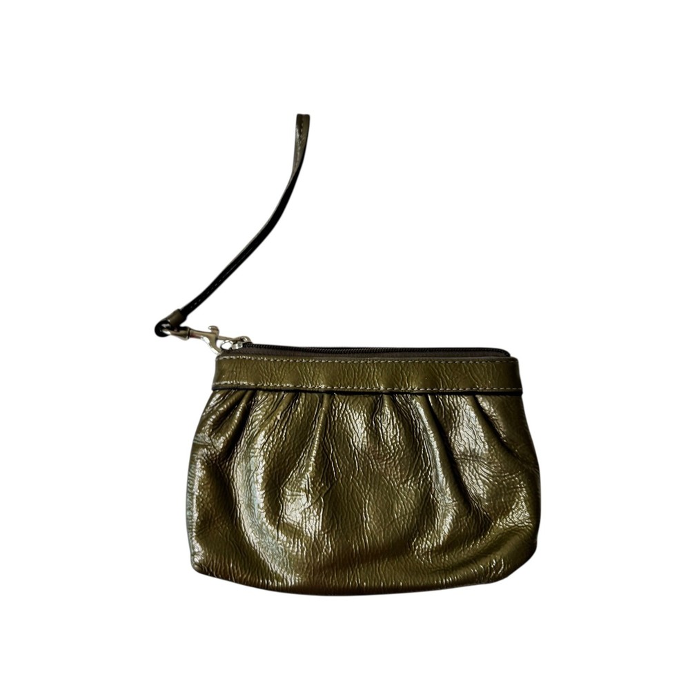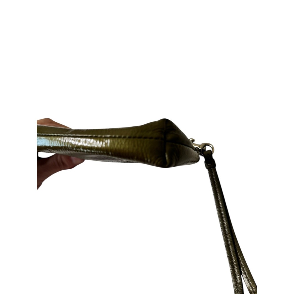 Embrace effortless chic with this stunning olive green patent leather wristlet, a shimmering jewel that brings a touch of glam to any ensemble. Its artfully ruched exterior catches the light, hinting at the luxurious texture within, while the convenient wrist strap ensures it stays securely by your side. Perfect for quick errands, a night out, or keeping your essentials organized within a larger tote, this versatile pouch adds a sophisticated sparkle to your everyday adventures. Exterior Material: Leather, Patent Leather, Polyurethane Style: Clutch Exterior Color: Olive Green Department: Women Lining Color: Blue Handle/Strap Material: Leather Handle/Strap Color: Olive Green Hardware Color: Silver Closure: Zip Keywords: Coach wristlet, Patent leather pouch, Olive green bag, Ruched clutch, Cosmetic bag, Makeup bag, Evening clutch, Designer wristlet, Small handbag, Fashion accessory, Women's accessories, Shimmering purse, Designer pouch, Travel organizer **Non smoking home. Pet friendly. No rips,stains or smells. Fast shipper! Bundle & save! Professional reseller! Offers welcome! • I ship same day or next business day. • Please feel free to ask any questions
