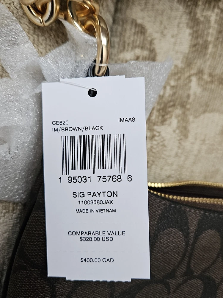 Coach Signature Payton Hobo CE620 Brown/ Black New With Tags Retails $328