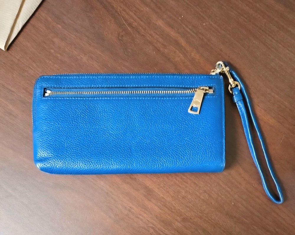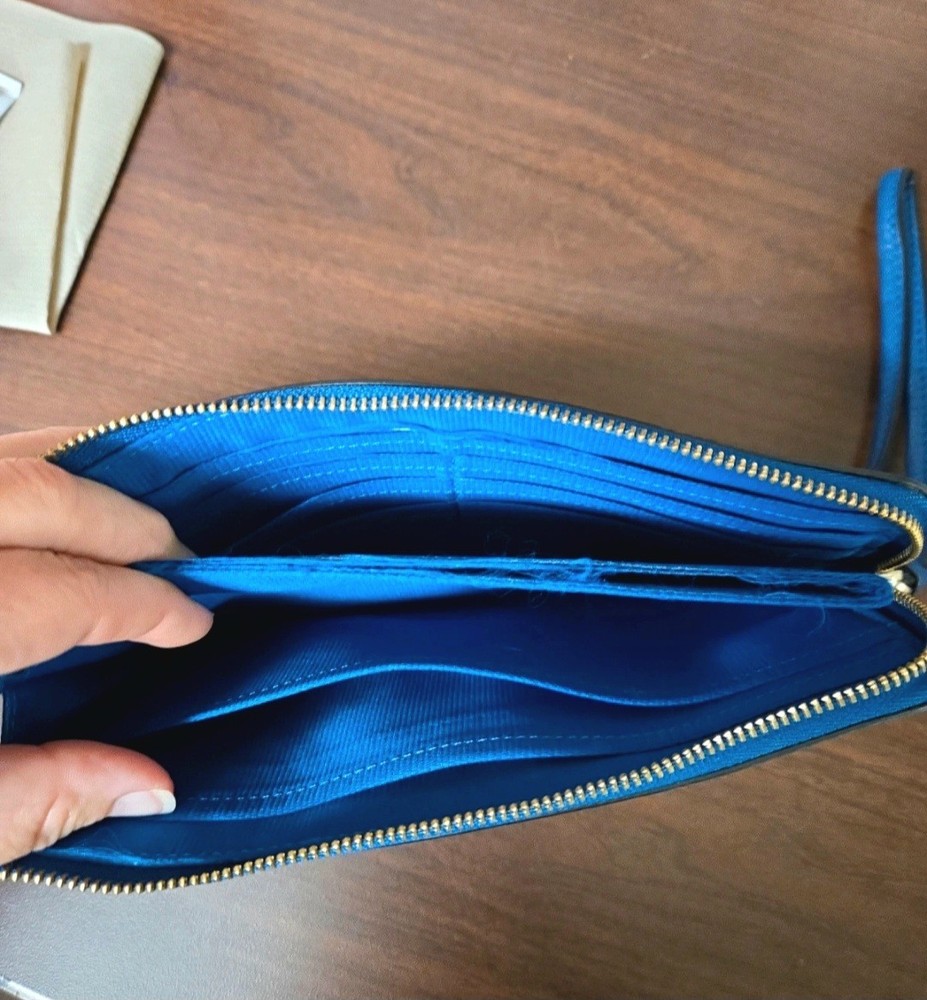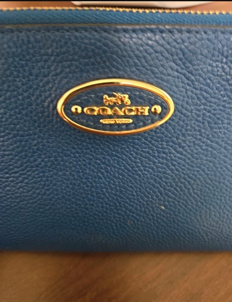 Features: Credit Card Theme: Logo Vintage: No Size: M Brand: Coach Material: Leather Item Length: 8" Type: Wallet Color: Blue Style: Wristlet Item Width: 4.25" Department: Women Seller Notes: “Great condition” Pattern: Solid Handmade: No Personalize: No