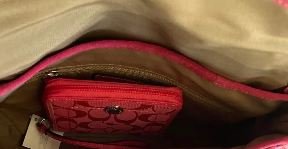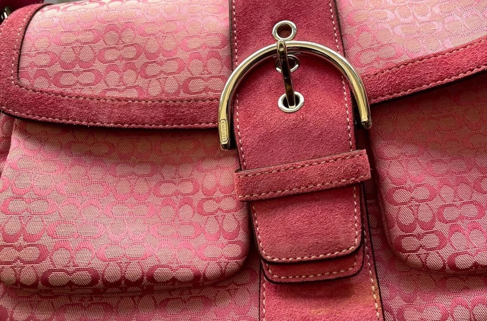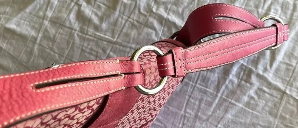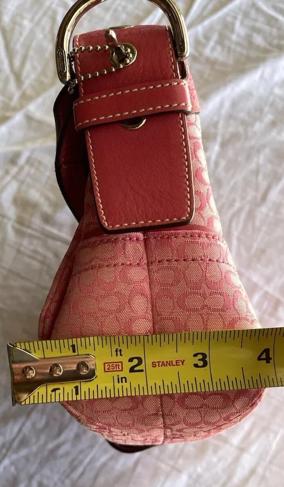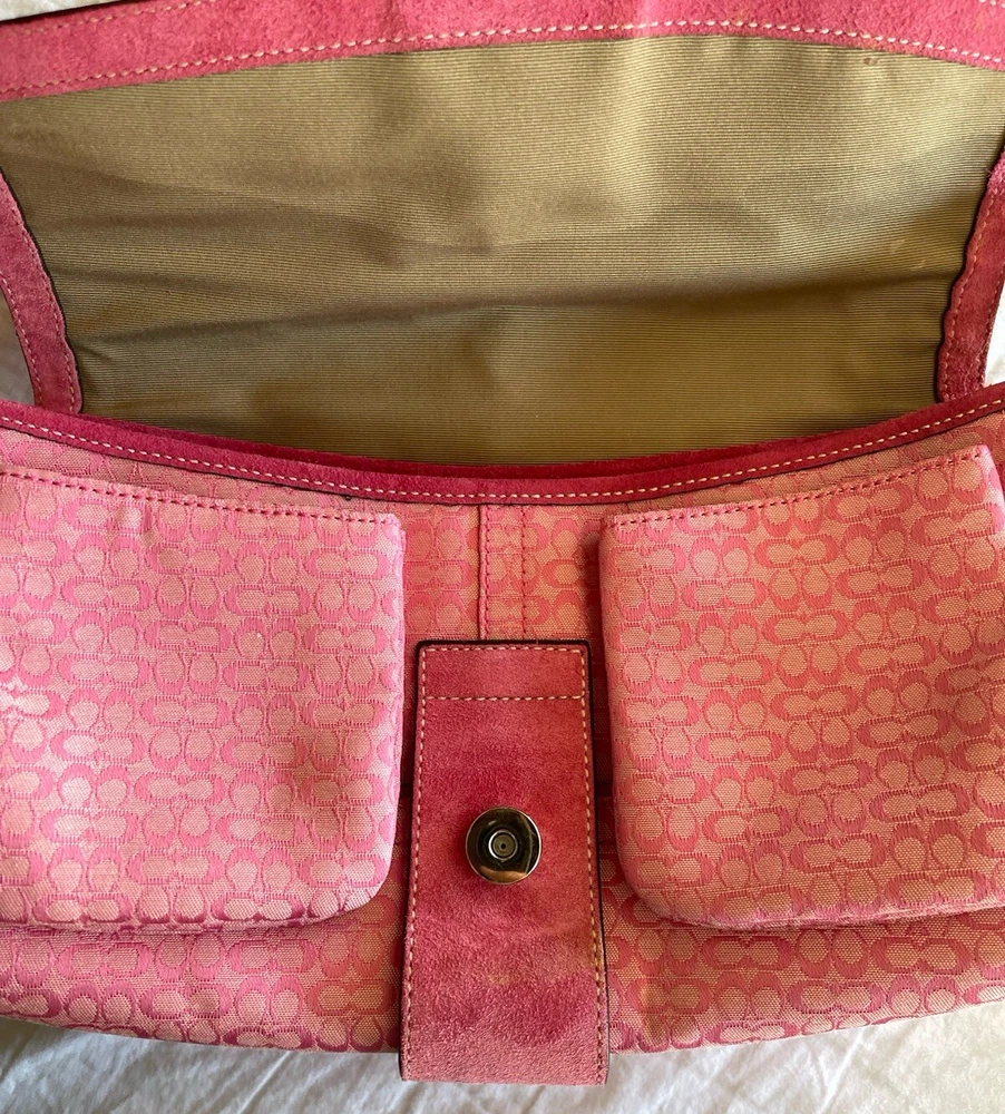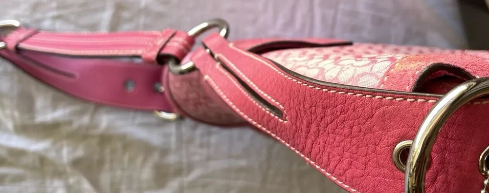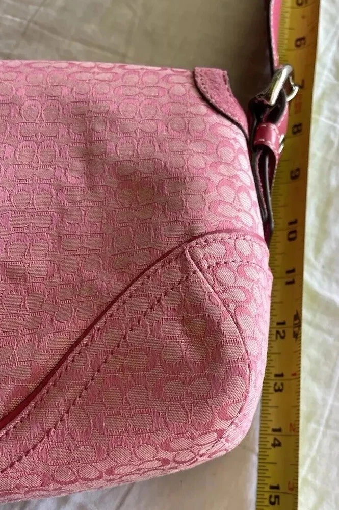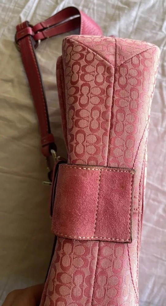 This stylish Coach shoulder bag is a must-have! The pink signature canvas with leather accents looks chic and timeless. It's the perfect size for essentials, and the flap closure keeps everything secure. The adjustable strap makes it comfortable to wear, and the vintage-inspired design adds a touch of elegance. Love the mix of pink and brown—so versatile for any outfit!