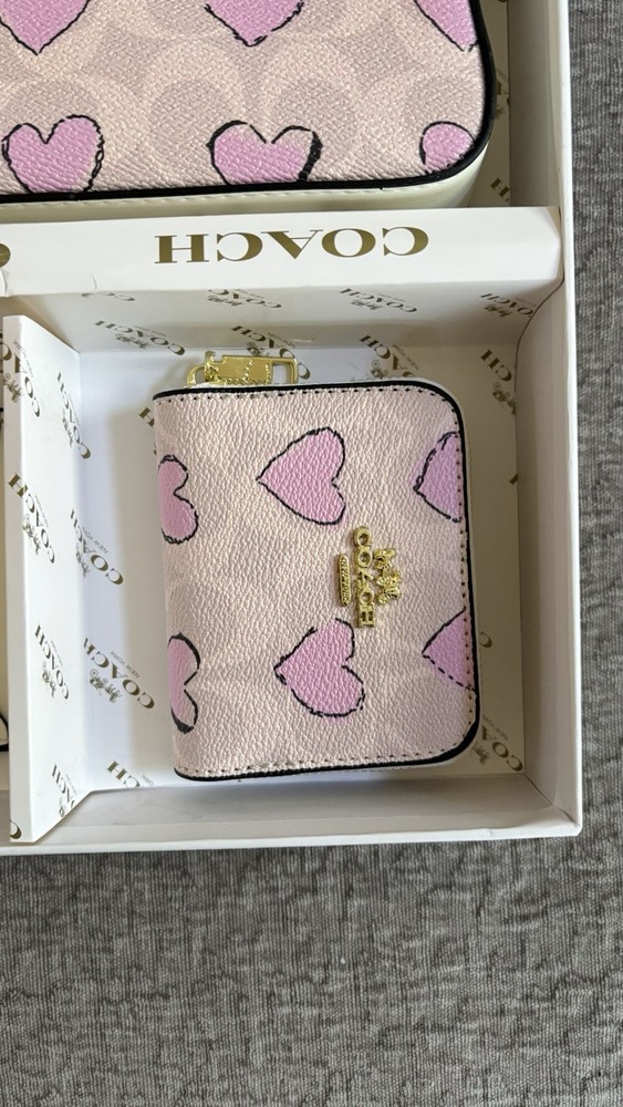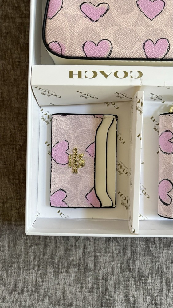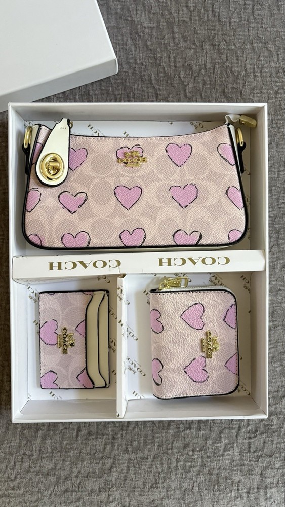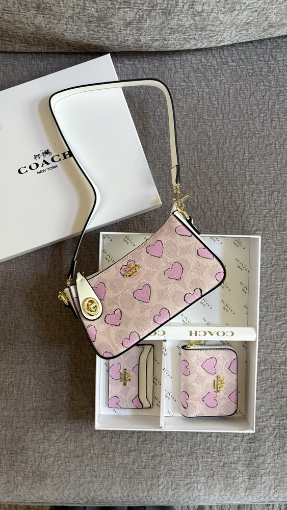 Coach Pink With Heart Print Shoulder Bag With Wallet And Cardholder For Women
