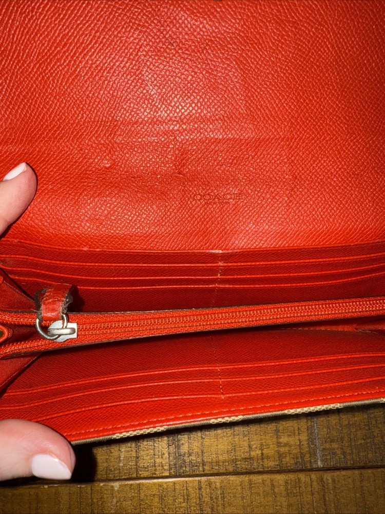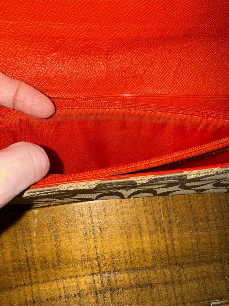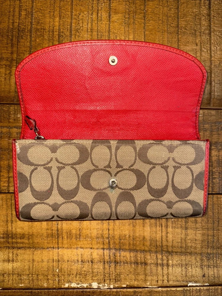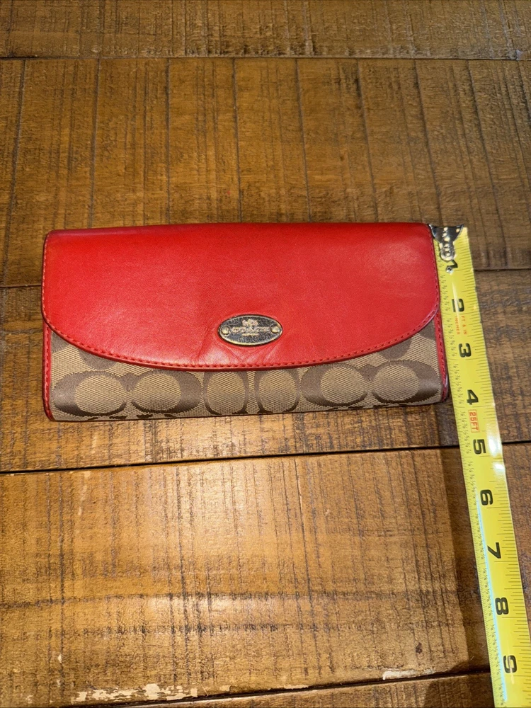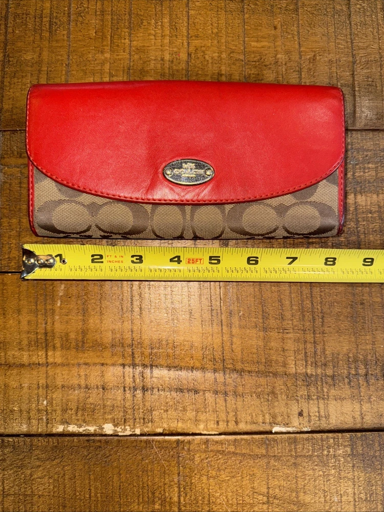 Coach Red & Brown Continental Wallet Condition: Fair (price reflects). Please review all photos carefully as they are considered part of the item's description and show approximate measurements. ๐๏ธ Wearhaus Market Store Policy Thank you for shopping at Wearhaus Market โ a curated collection of new and preloved fashion with style and soul. Please review our shop policy before making a purchase: ๐ฆ Shipping & Responsibility -All items are carefully packaged and shipped with tracking. -Packages are photographed prior to shipment to document condition and packaging. -At this time, we ship only within the U.S. ๐ Returns & Exchanges -All sales are final. -As all items are accurately represented and often one-of-a-kind, we do not accept returns or exchanges. -Each listing includes clear measurements, multiple photos, and detailed descriptions to help you shop with confidence. -Please feel free to message us with any questions before purchasing โ weโre happy to help! Thank you for shopping conscious fashion ๐ค