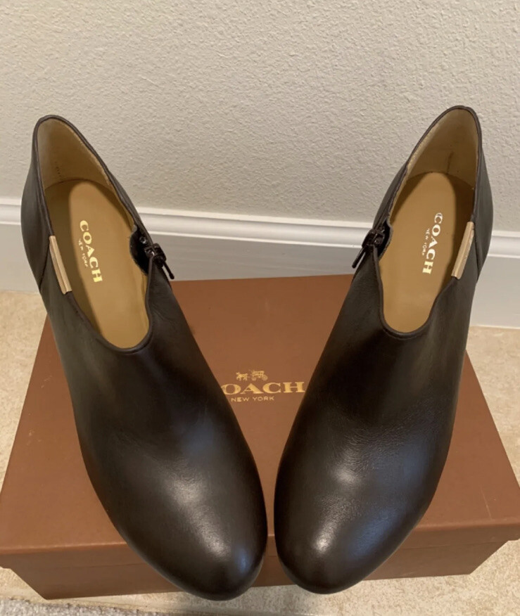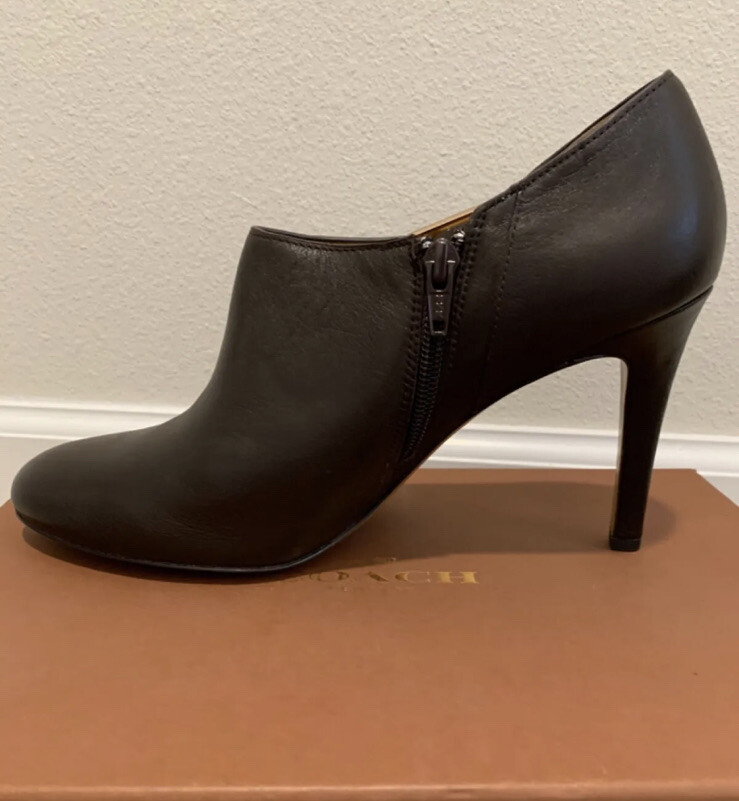 Brand New With Box Coach Seneca Women’s Bootie 8.5 Leather Chestnut Brown Heel. MSRP $176.00!!! Steal of a deal!! Women’s size 8.5 Brand New Never been worn chestnut brown bootie heels! You’ll look fantastic no matter what else you have on rocking these eye catching wonders of shoe world! 100% Glazed Calf Leather Chestnut Brown with Gold Tone COACH Logo Metal Plaque on Side Slim Heel Sz 8.5 M Width: Standard Heel Height: High 3.5" If you’d like more photos or have any inquires feel free to contact me at any time!