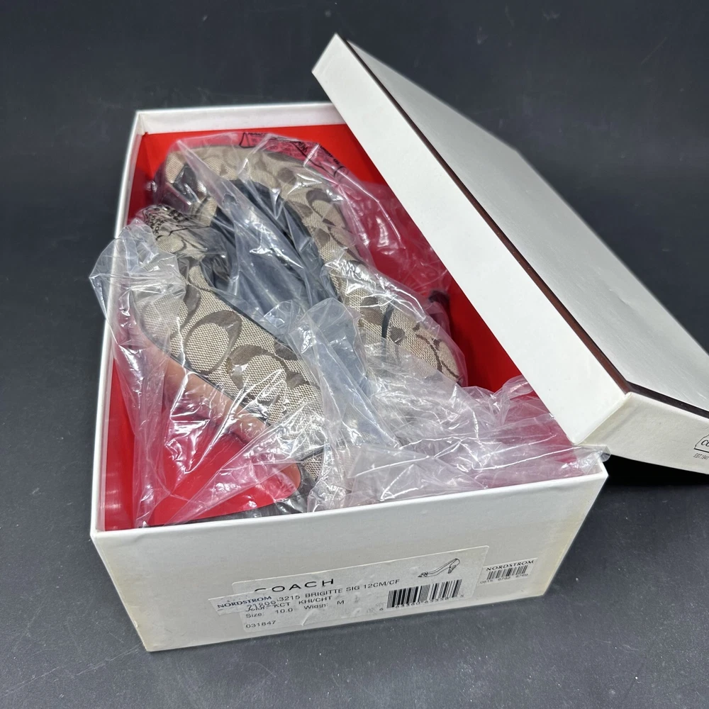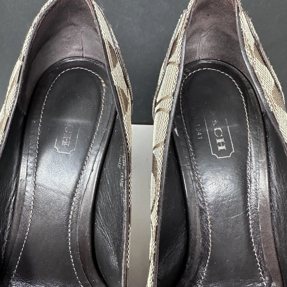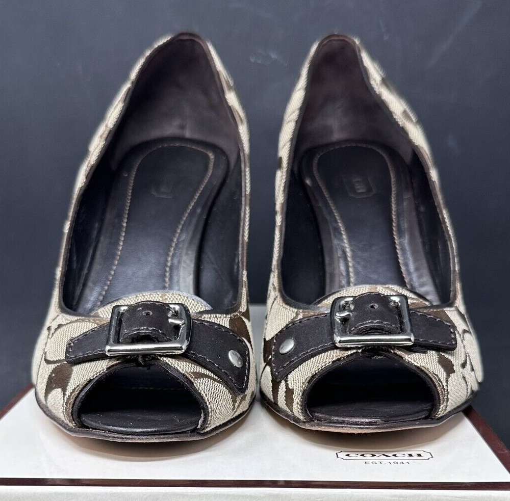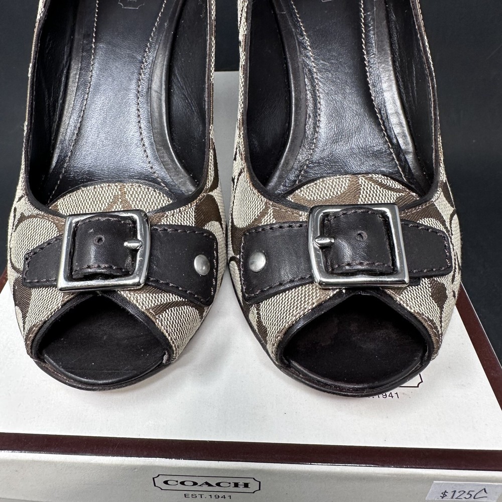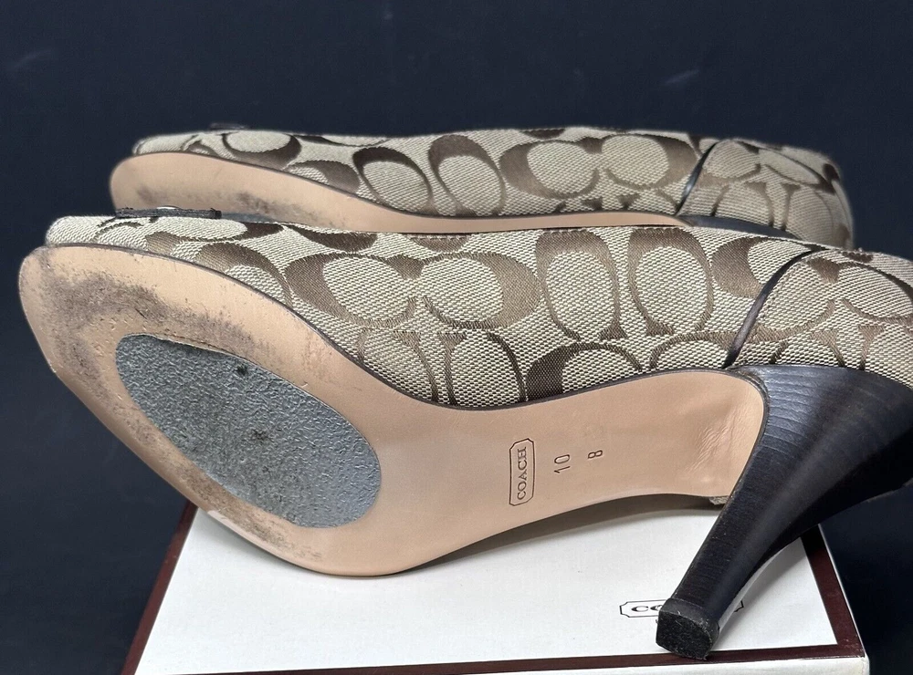 Coach Logo Brown Signature Print Stiletto Pump Open Toe Heel - 10 M Genuine Coach ladies shoes
