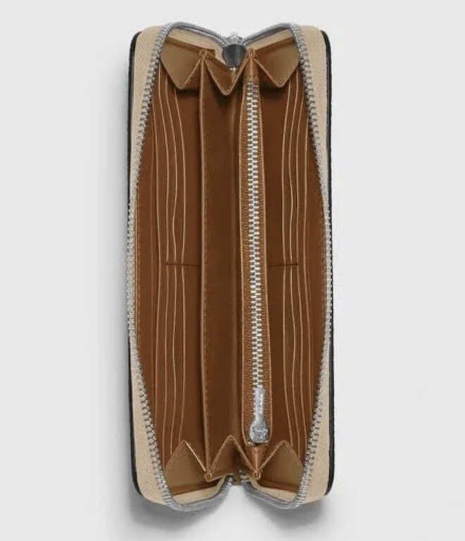 New with tags 100% Authentic Coach C4452 Long Zip Around Khaki / Ice Purple with Silver tone hardware Signature Coated Canvas and smooth Leather Twelve credit card slots Full-length bill compartments Inside zip coin pocket Zip-around closure Detachable wrist strap Length: 7 1/2" Height: 4" Depth