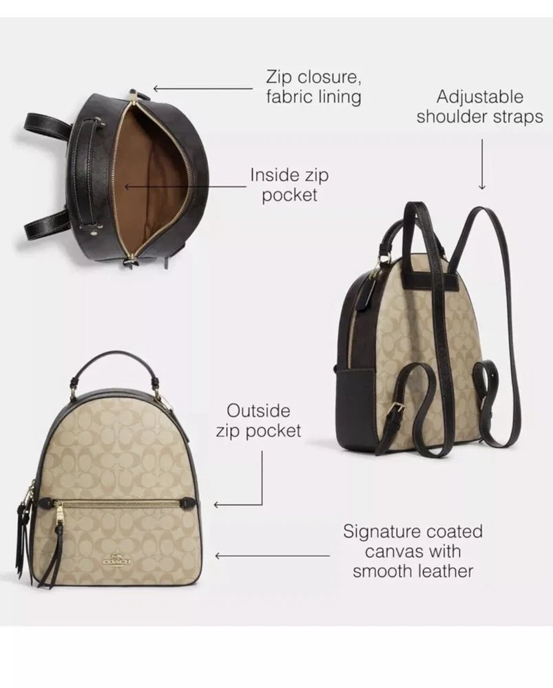Coach Signature Pattern Jordyn Backpack Purse Light Khaki-NWT (C2002) Brand New! New with tags