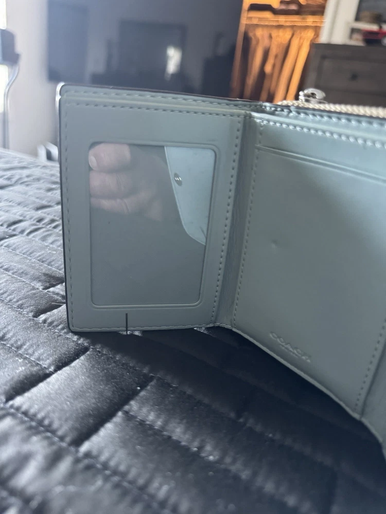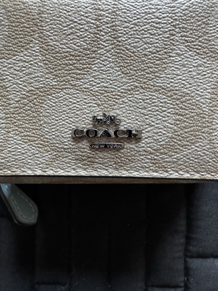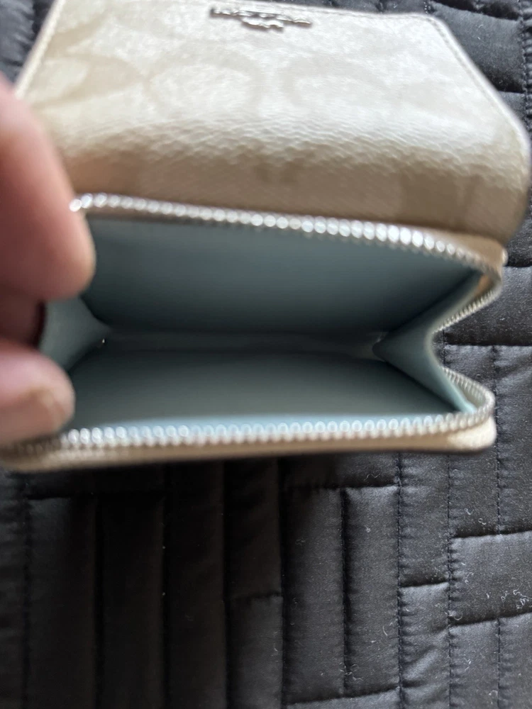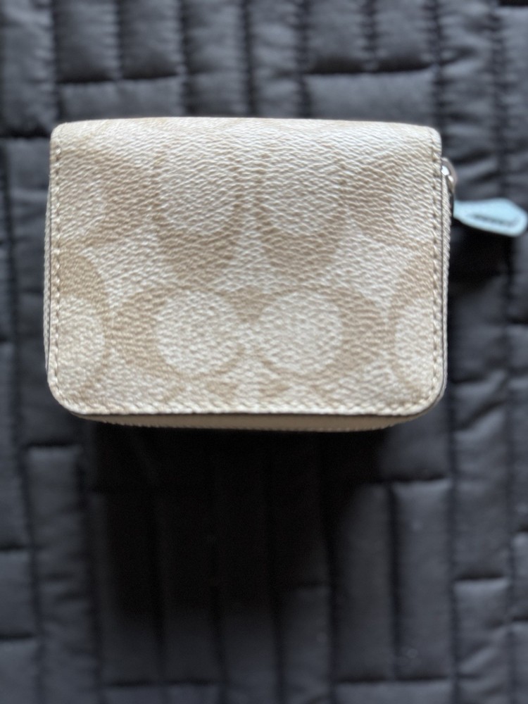 Fits perfectly in either a small and medium sized purse, leaving plenty of room for other items. In coach’s signature print with a gorgeous magenta leather interior. -2 credit card slots -Full length bill compartment -ID window -Snap closure -Retails for $150