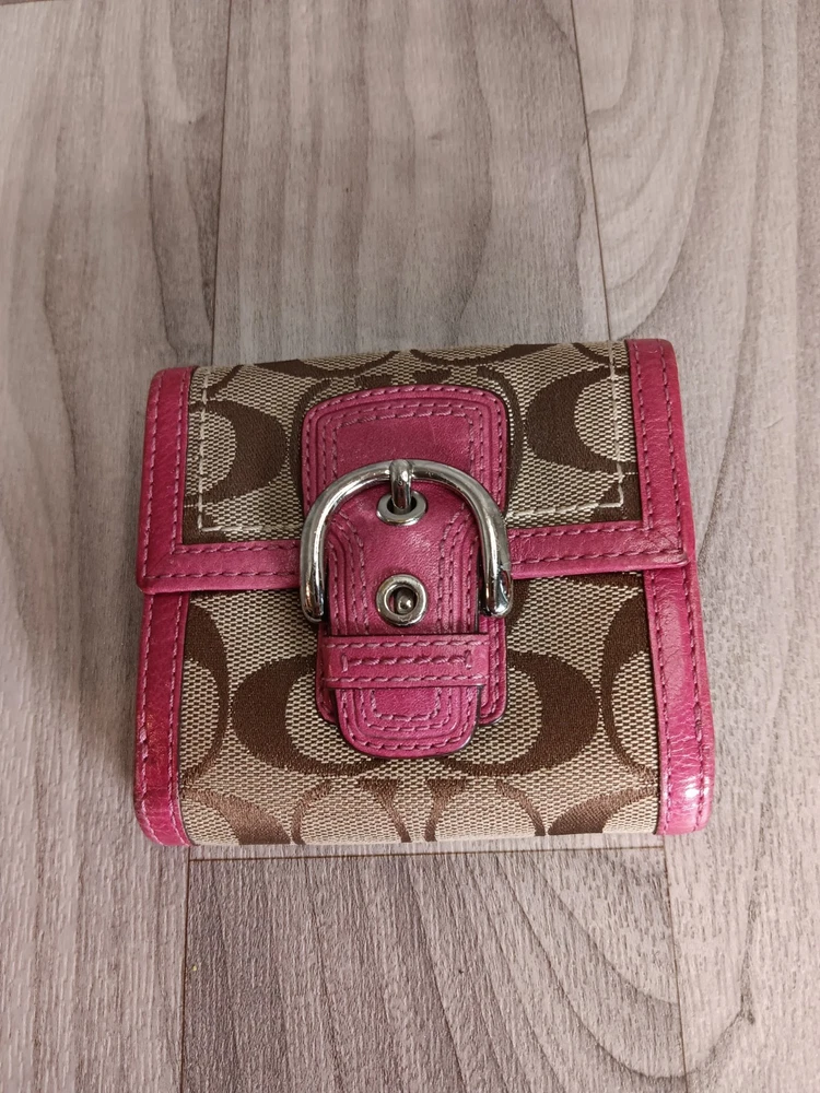 Coach Peyton Signature Envelope Wallet with Pouch in Khaki Navy Excellent Condition