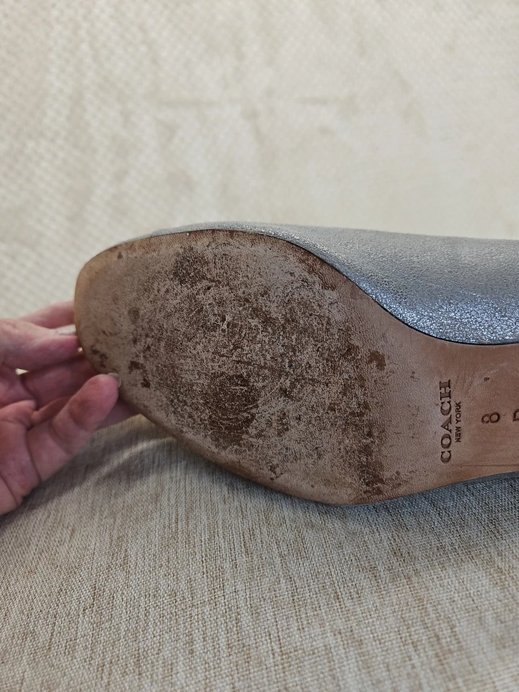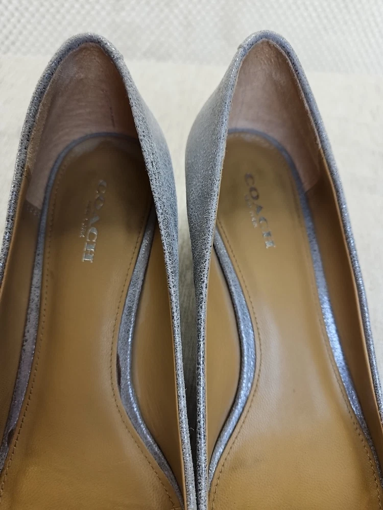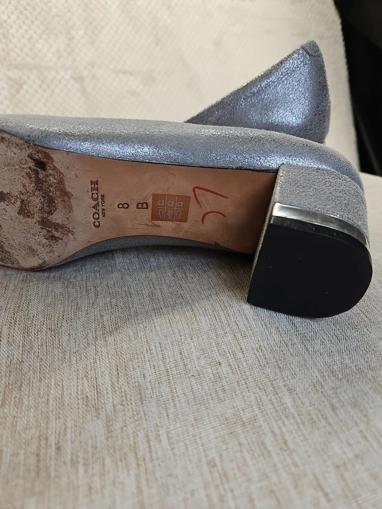 Customized: No US Shoe Size: 8 Type: Heel Personalize: No Heel Style: Block Style: Pump Department: Women Heel Height: Low (1-1.9 in) Occasion: Casual, Party/Cocktail Country/Region of Manufacture: China Pattern: Solid Theme: Metal Character: Silver Color: Silver AU Shoe Size: 8 Brand: coach UK Shoe Size: 6 Lining Material: Leather Features: Comfort Vintage: No Season: Spring, Summer, Fall Closure: Slip On Insole Material: Leather Upper Material: Leather Outsole Material: Leather Accents: Logo Platform Height: 1.5 in Toe Shape: Round Toe EU Shoe Size: 38