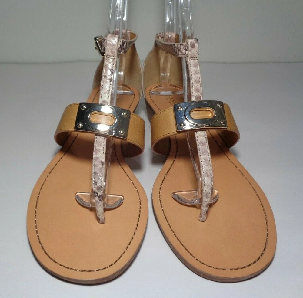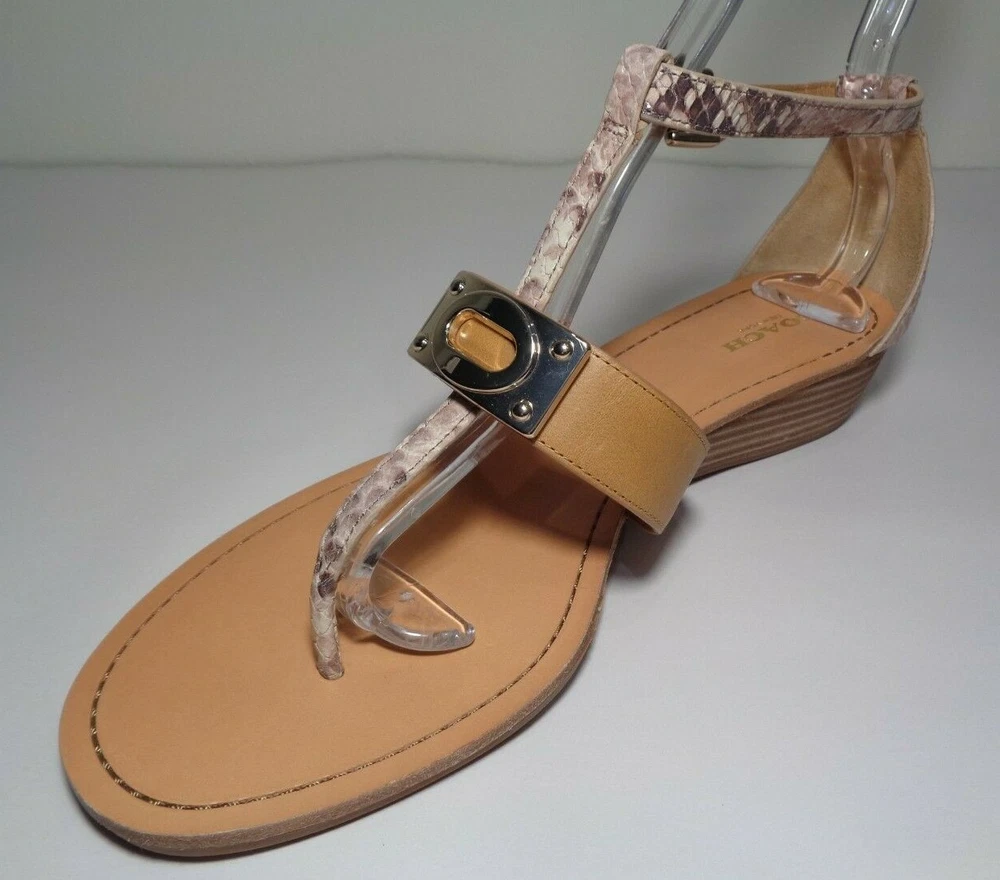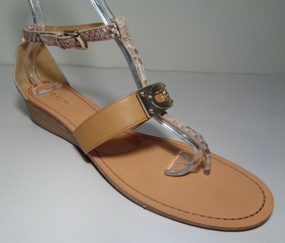 Coach Size 9.5 M INES Snake Print Leather Wedge Heel Sandals New Women's Shoes Style: INES LT PRNT SNK/VEG LTHR, A5727 Color: Natural/Ginger, 34A5727-NGN Leather upper and lining Wood stacked heel Rubber outsole Heel height approximately 1.5 inches Eur 39.5 CN 245.5(1.5)