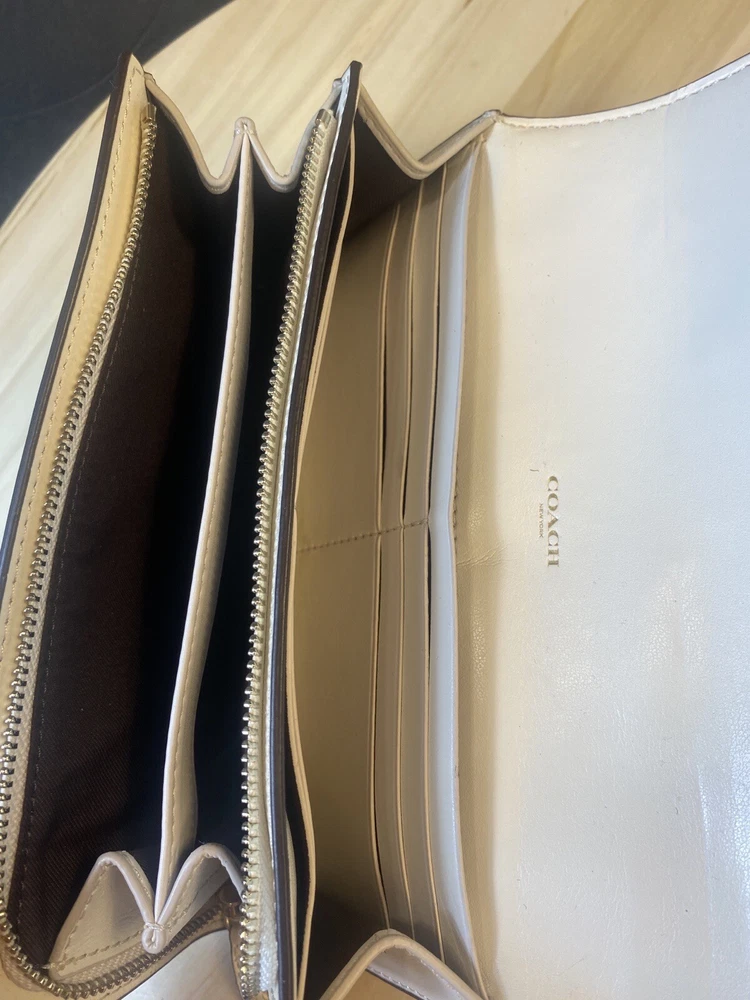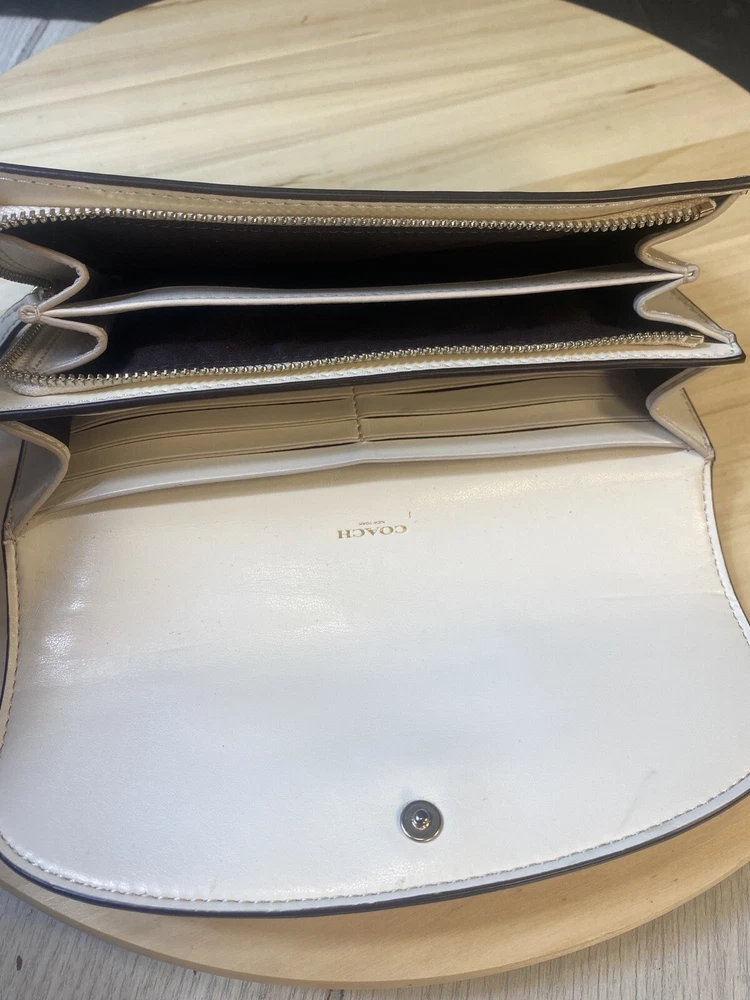Coach Slim Envelope Wallet In Signature Canvas White Beige Monogram Shlf2#2018