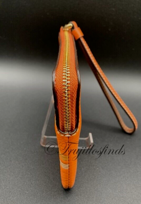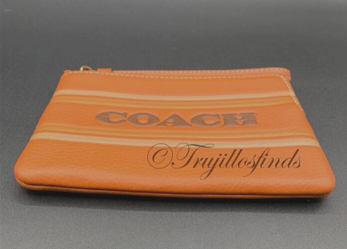 Coach Corner Zip Wristlet Canyon Stripe New, Style CH311 Canyon Orange Refined Pebble Leather Zip Top Closure, Fabric Lining Two Credit Card Slots, Gold Tone Hardware Attached Wrist Strap 6 1/4" W x 4" H x 1/2" D FAST SHIPPING! Comes from a Smoke Free Home Thank you for considering choosing us for this item! We have 100% feedback and treat each and every one of our buyers with respect. If you have any concerns, please let us know. We will take every step possible to ensure that your visit with us is a pleasant one! Buy with confidence! As customer service is our number one priority. Payment: We accept all forms of payment that eBay lists. Once payment is cleared, we will ship your item within 1 business day. Shipping: We ship via USPS Standard within one business day after receiving cleared payment. Expect 2-9 days for delivery, and we'll do our best to make sure the item reaches you as quickly as possible! We ship within the United States and to our dedicated military members with APO addresses. Return Policy: We accept returns within 30 days of receiving the item in original condition it was sent. (i.e. Tags still attached no damage). Please contact us first though so we can work out the details. We are always happy to work with you for any special circumstances! Money will be refunded 100% as soon as the item is inspected.