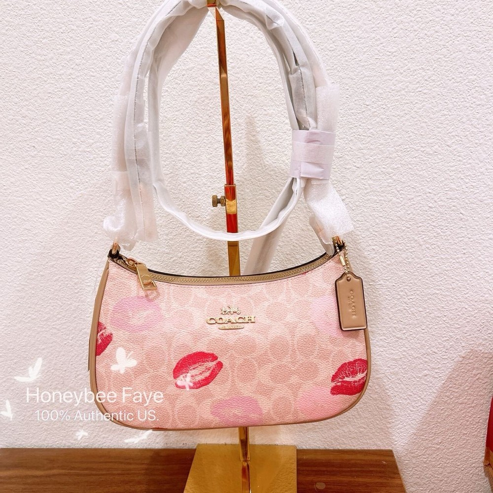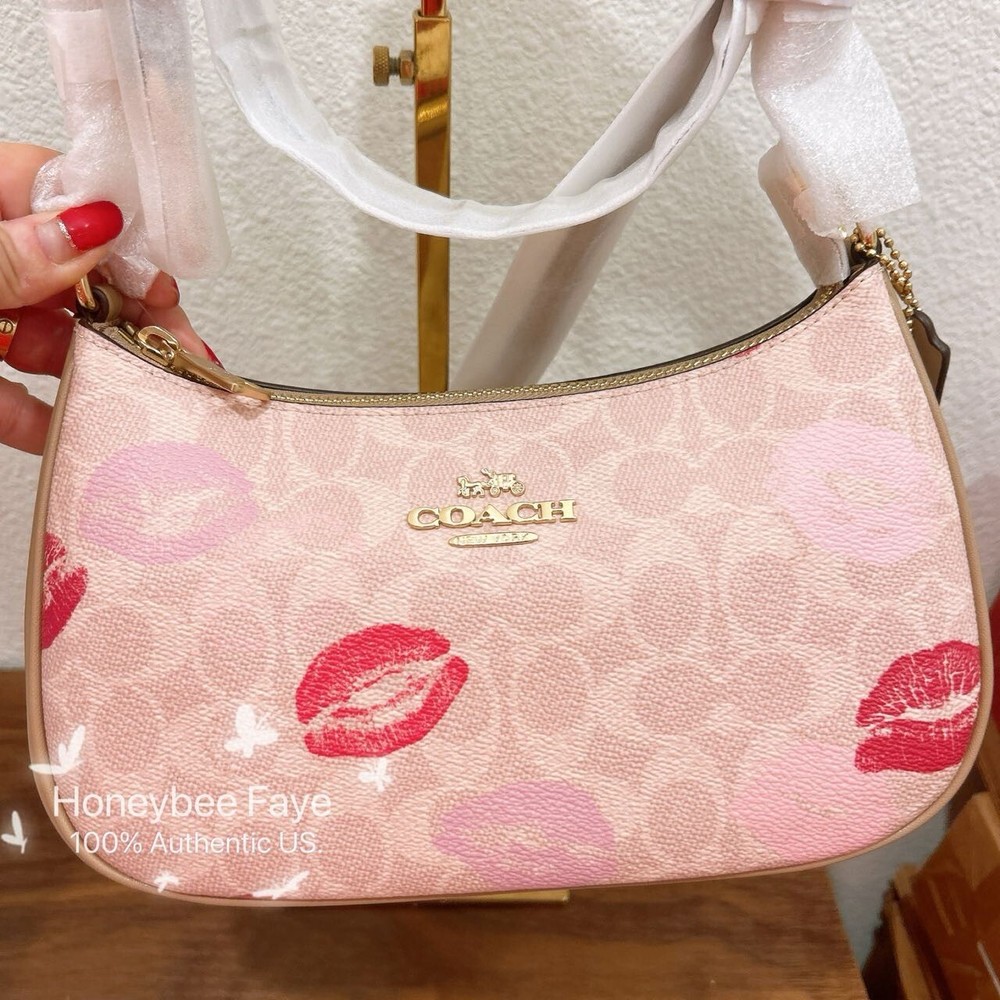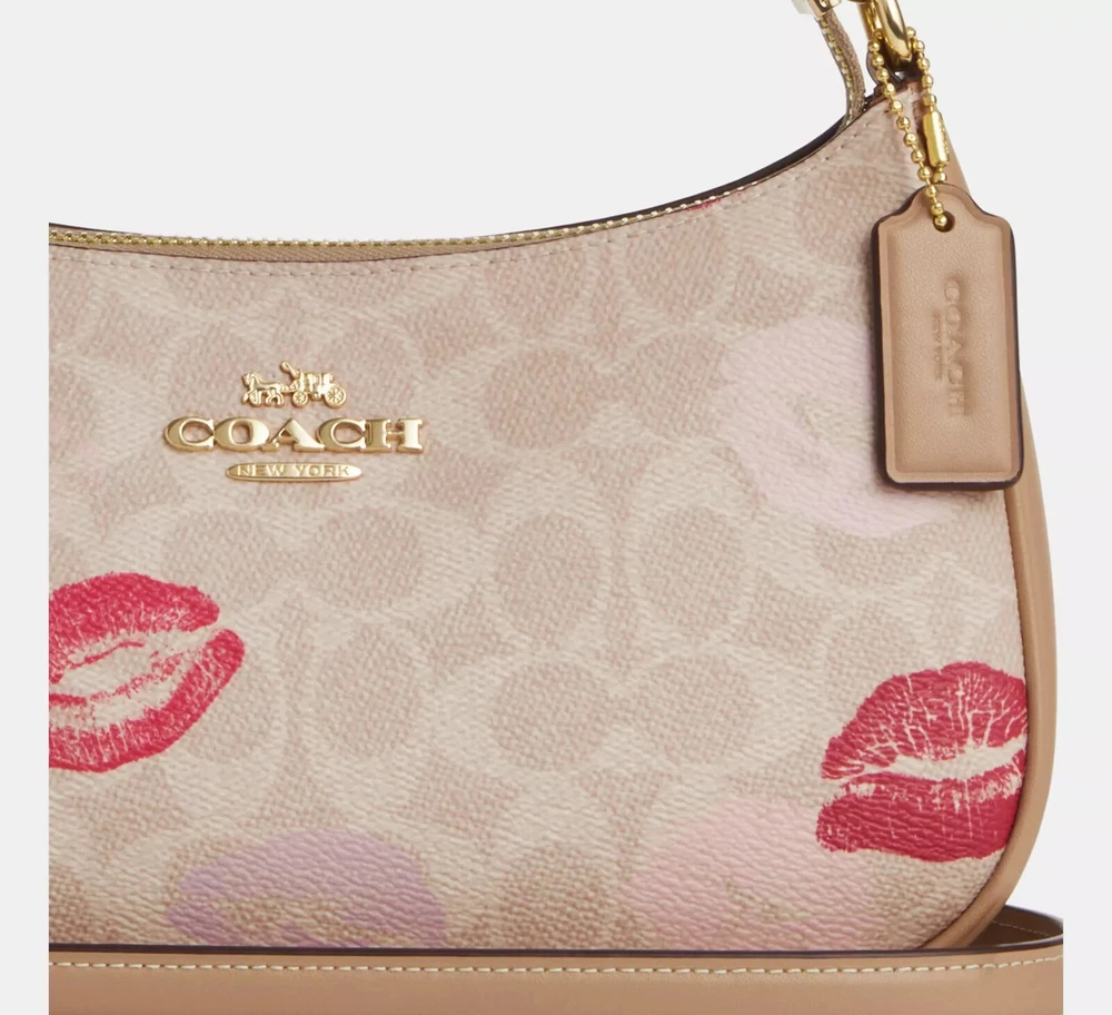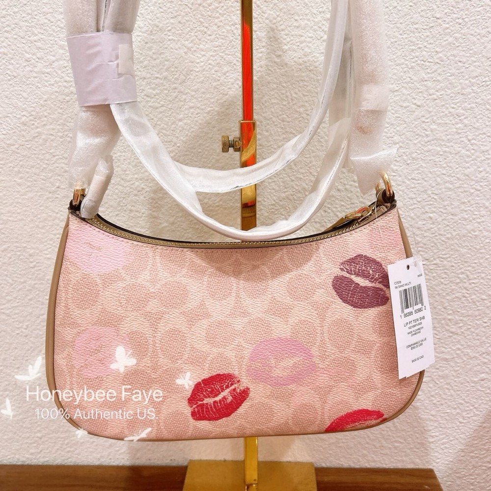 Coach Teri Shoulder Bag In Signature Canvas With Lips Print NWT Coach Teri Shoulder Bag In Signature Canvas With Lips Print CZ938 Limited 100% Authentic Brand new with tags Come with original packaging Limited Edition Color: sand multi Style Number CZ938 Measurements Length: 9.5" Height: 6.0" Width: 3.0" Materials Signature coated canvas Fabric lining Handle Detachable handle with 8.5" drop Strap Detachable strap with 22.75" drop for shoulder or crossbody wear Features Inside multifunction pocket Zip-top closure Price is firm