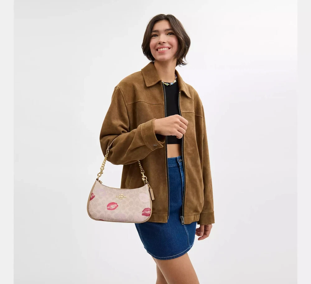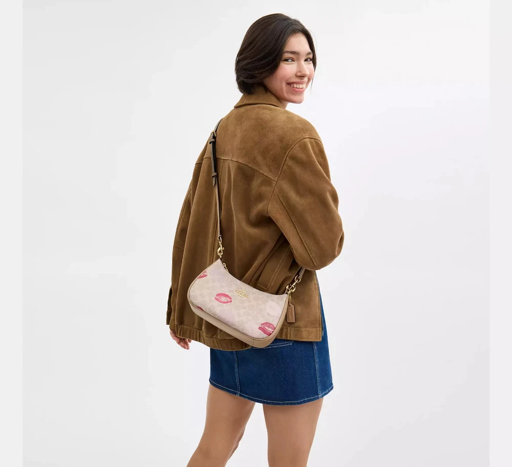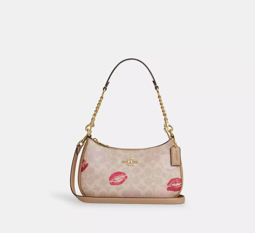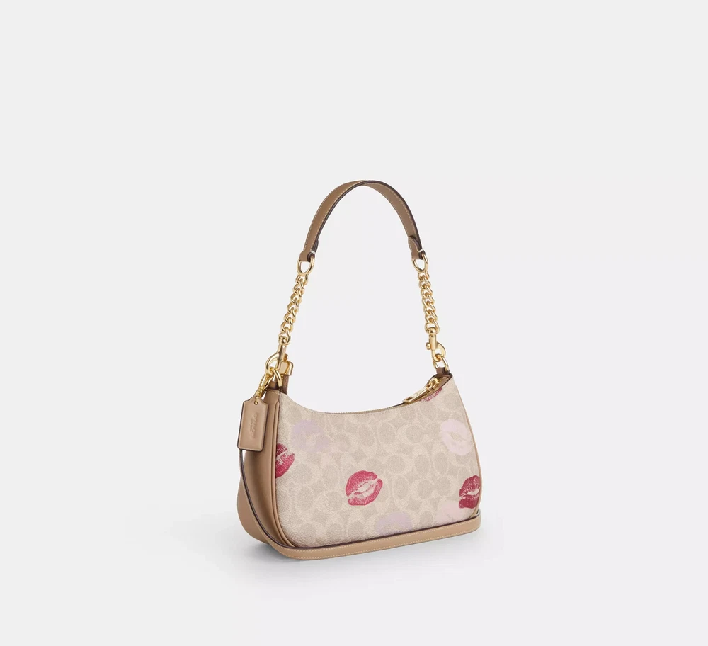 Coach Teri Shoulder Bag In Signature Canvas With Lips Print NWT Coach Teri Shoulder Bag In Signature Canvas With Lips Print CZ938 Limited 100% Authentic Brand new with tags Come with original packaging Limited Edition Color: sand multi Style Number CZ938 Measurements Length: 9.5" Height: 6.0" Width: 3.0" Materials Signature coated canvas Fabric lining Handle Detachable handle with 8.5" drop Strap Detachable strap with 22.75" drop for shoulder or crossbody wear Features Inside multifunction pocket Zip-top closure Price is firm