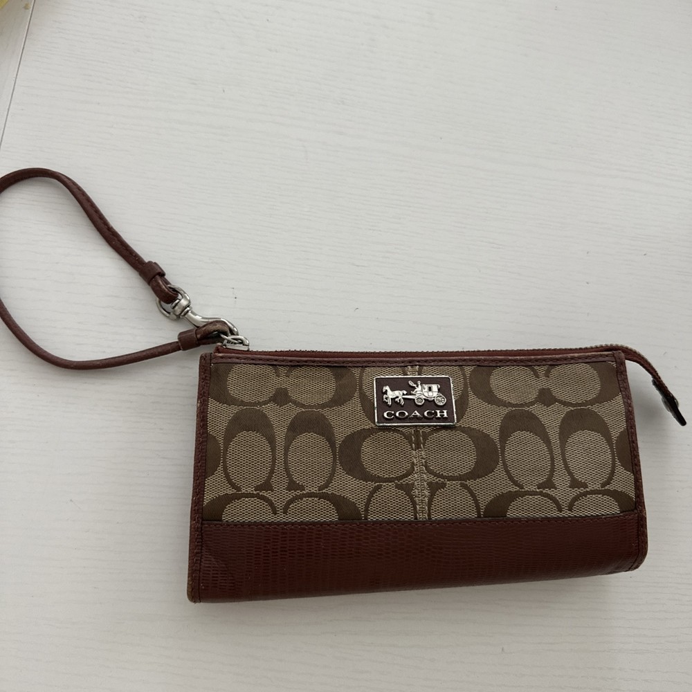 Coach wallet clutch. Has been used but still has lots of life left in it! This clutch is in good condition! Holds a phone along with many card slots!