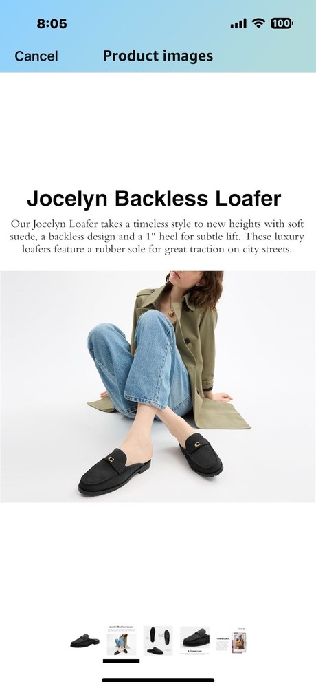 Coach Women's Jocelyn Backless Loafer, Charcoal/Black, 5 Origin Imported Sole material Rubber Outer material Denim Closure type Pull-On Country of Origin Vietnam About this item Editor's Notes: Our Jocelyn Loafer takes a timeless style to new heights with soft suede, a backless design and a 1" heel for subtle lift Velvety Suede: That fuzzy feeling. Our eminently touchable suede is buttery, supple, and oh-so-soft - for a luxurious Coach loafer Rubber Outsole: These luxury loafers feature a rubber sole for great traction on city streets It's All in the Details: Suede upper, man-made leather lining and footbed, rubber outsole, slip on, 1" heel This is COACH: Having the courage to be real since 1941. COACH is the Original American House of Leather - with a legacy of craft and a community that champions the courage to live authentically Description Our Jocelyn Loafer takes a timeless style to new heights with soft suede, a backless design and a 1" heel for subtle lift. Suede upper, man-made leather lining and footbed, rubber outsole, slip on, 1" heel