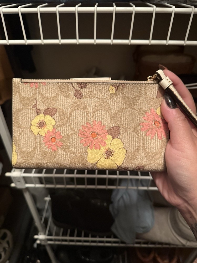 The Coach Women's Leather Wallet with Spring Flowers in Multi Color is a stylish and functional accessory for women. Made from high-quality leather with a canvas fabric type, this wallet features a floral pattern and a zip-around style for easy access. It includes credit card slots and a spacious interior, perfect for organizing your essentials while showcasing a lovely flower theme. This Coach wallet is a versatile and fashionable addition to any woman's handbag collection.