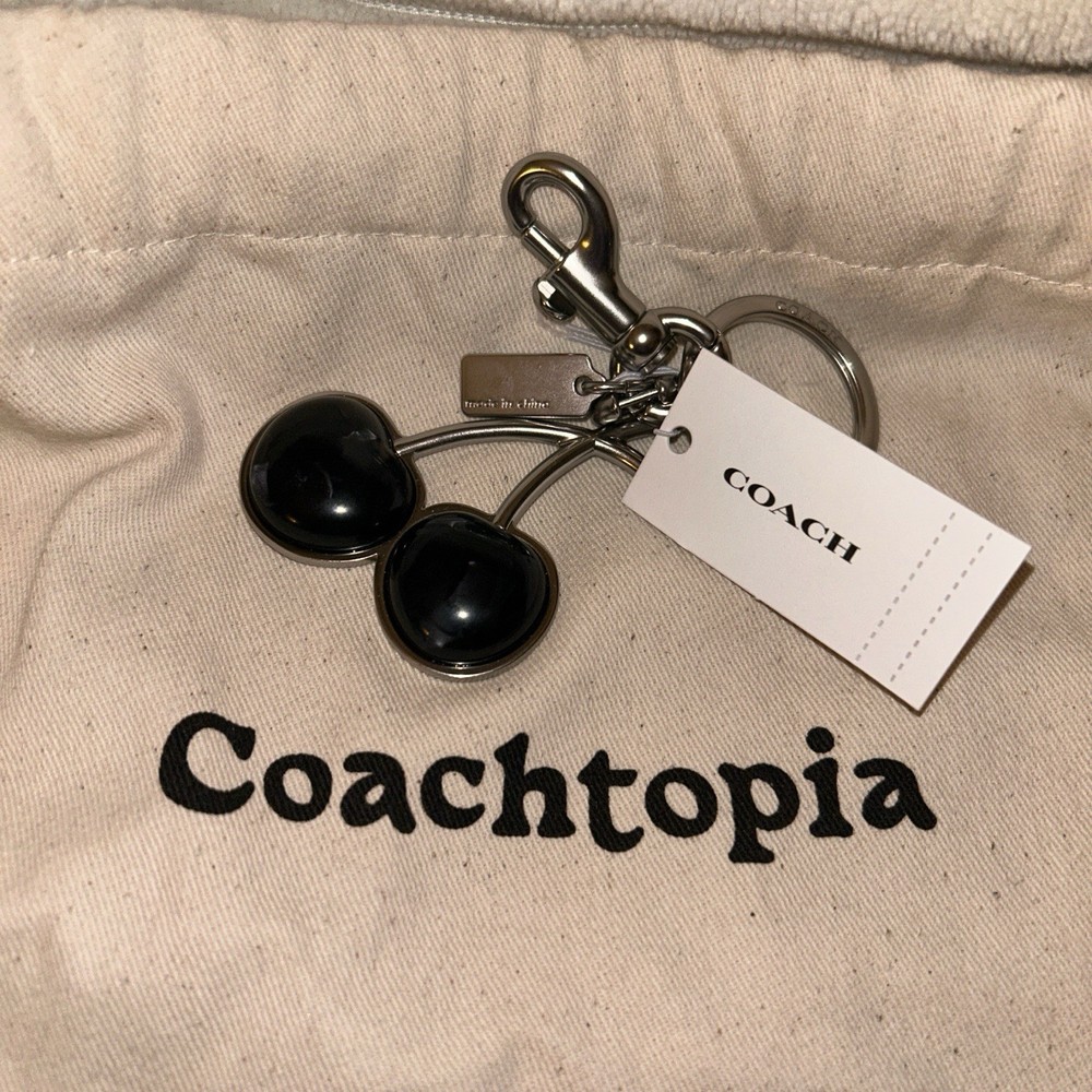 The Coach X Coachtopia Cherry Bag Charm Keychain in Silver / Black is a stylish accessory for women who appreciate a solid black color with a cherry pattern. Made from resin and metal, this keychain features the iconic Coach logo as accents. Its detachable design makes it versatile for use as a bag charm or keychain, adding a touch of charm to any outfit. The multifunctional nature of this piece ensures it can be worn in various ways to suit different occasions.