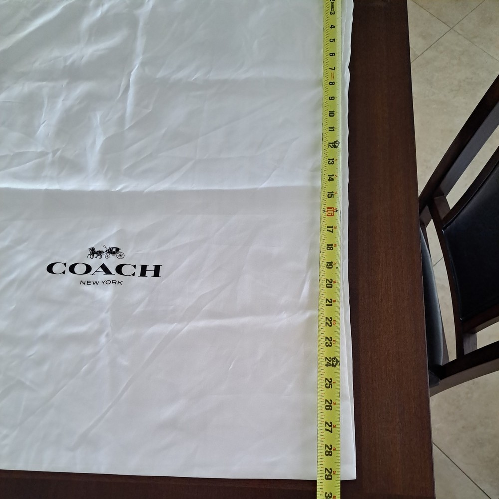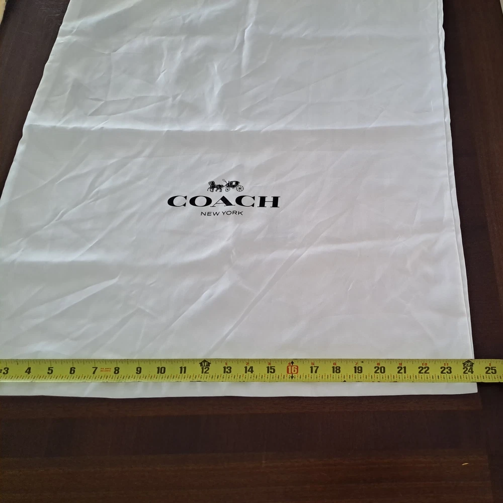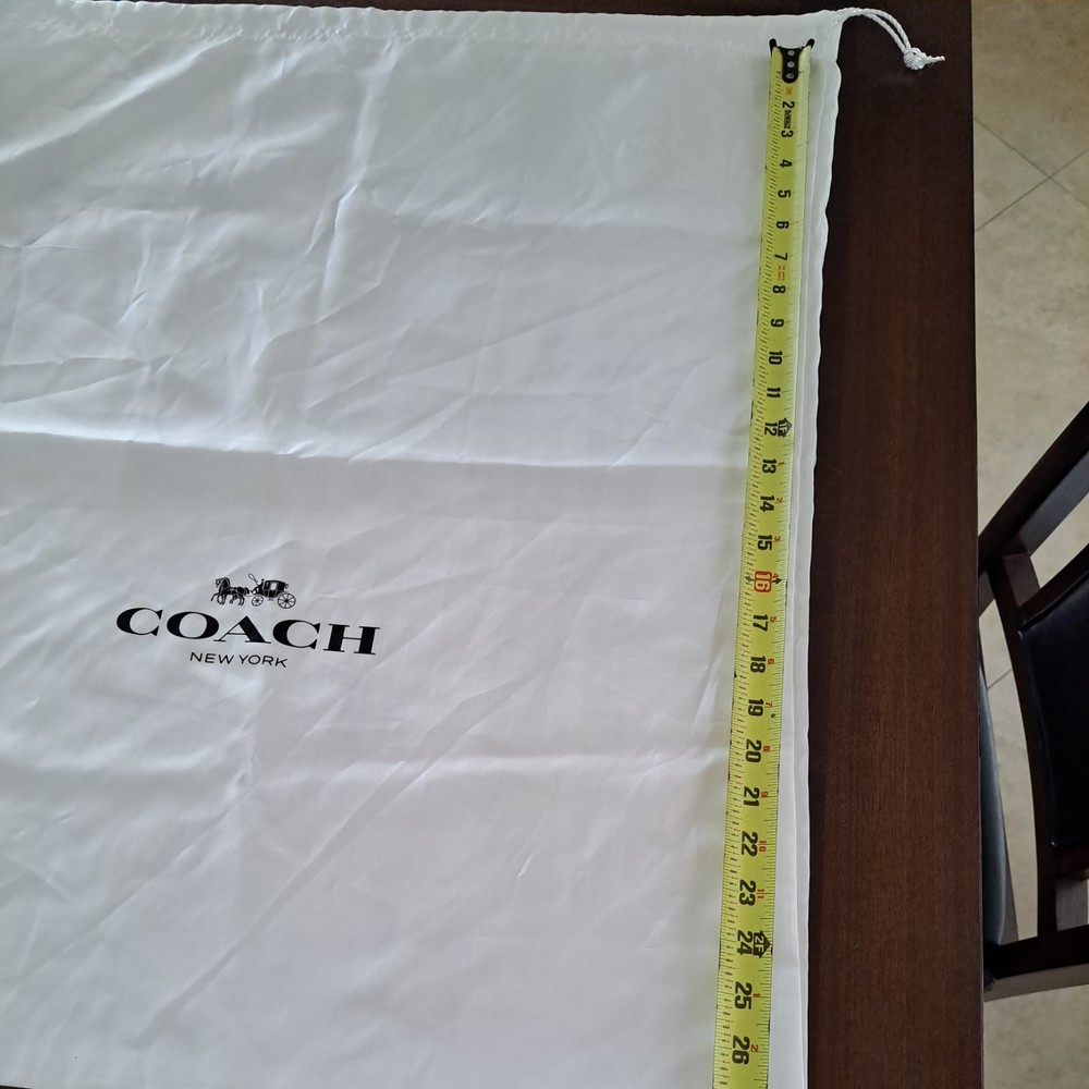 The Coach New York Drawstring Dust Bag Storage Cover Bag in Chalk White is a stylish and practical accessory for your handbag, shoes or any other precious coach accessories Made from satin fabric with a drawstring accent, this dust bag is designed to protect your bag from dust and damage. It features a pouch design and comes in a size suitable for small to extra-large handbags. The Coach brand ensures quality and durability, making it a must-have for any fashion-conscious individual. Made in China, this dust bag is a must to protect your valuables