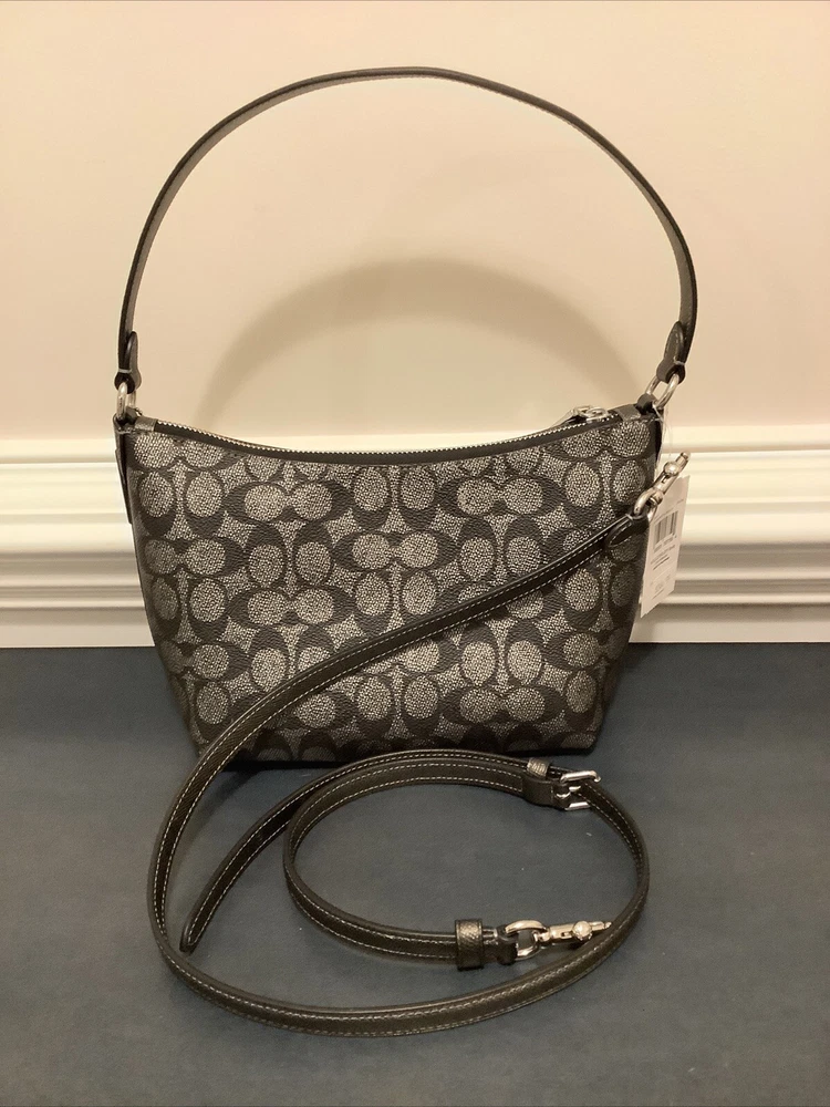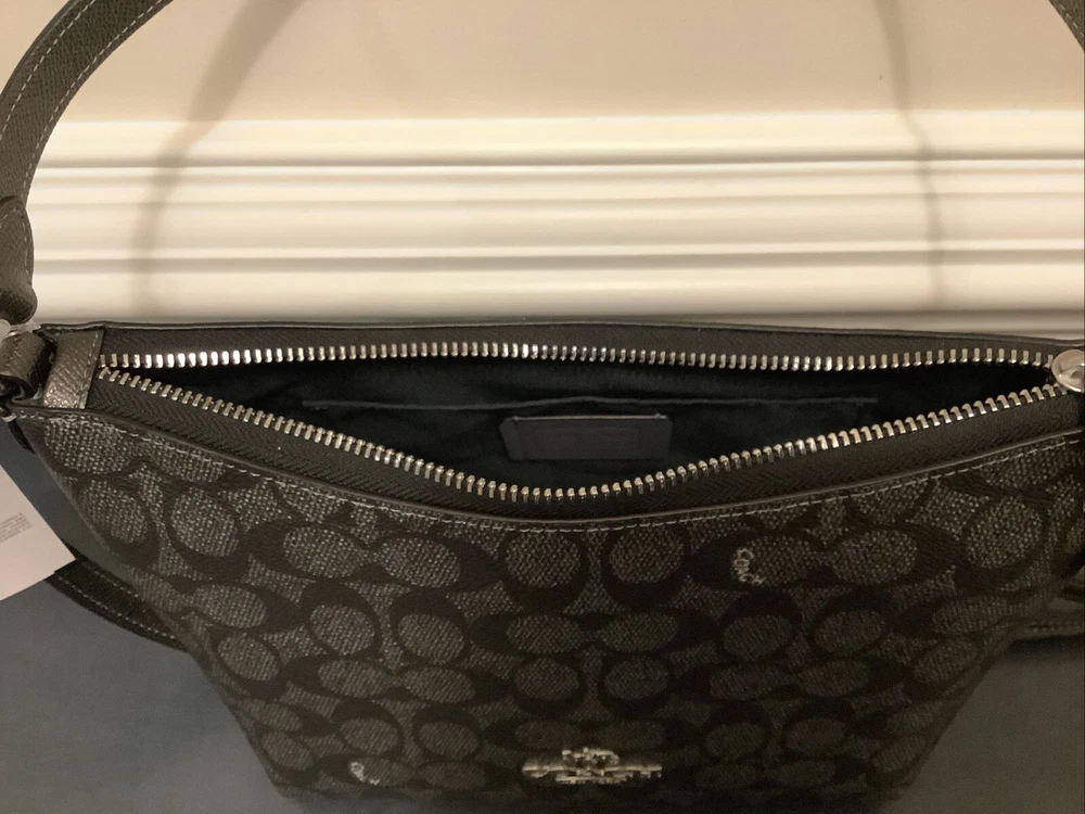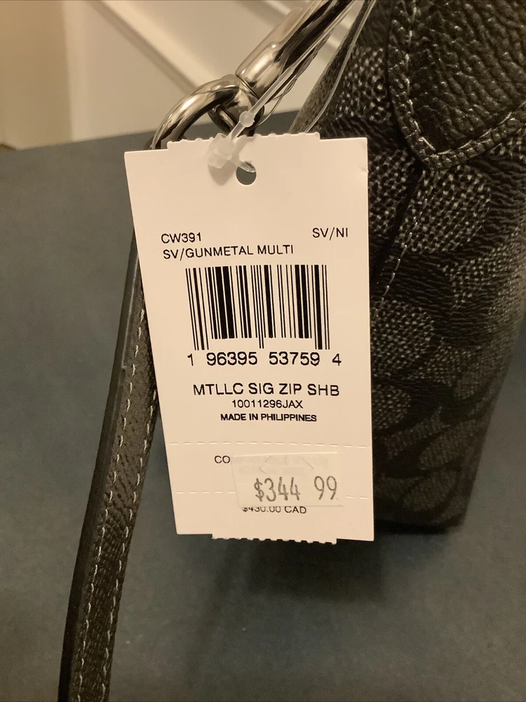 Coach Zip Top Shoulder Bag CW391 Signature Canvas/Gunmetal Metallic Leather NWT BRAND NEW