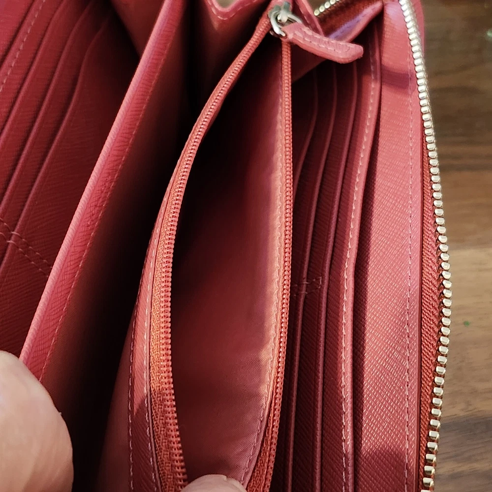 Coach Long Wallet Zip Around Wide Pink Leather Stripe Breast Cancer Pink This beautiful Wallet has the signature jacquard fabric with the center wide pink leather stripe. Multiple credit card slots on both ends of this wallet. One center zipper pocket, fully functional. Also has 5 slip in pocket slots for cash and miscellaneous items. Certificate of Authenticity through Authentic Detective will be included.