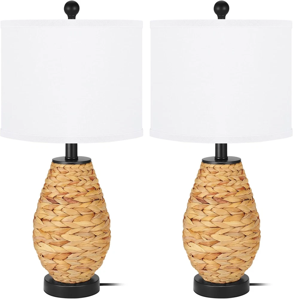 Coastal Table Lamps Set of 2, Retro Natural Seagrass Rattan Woven 24" Bedside La