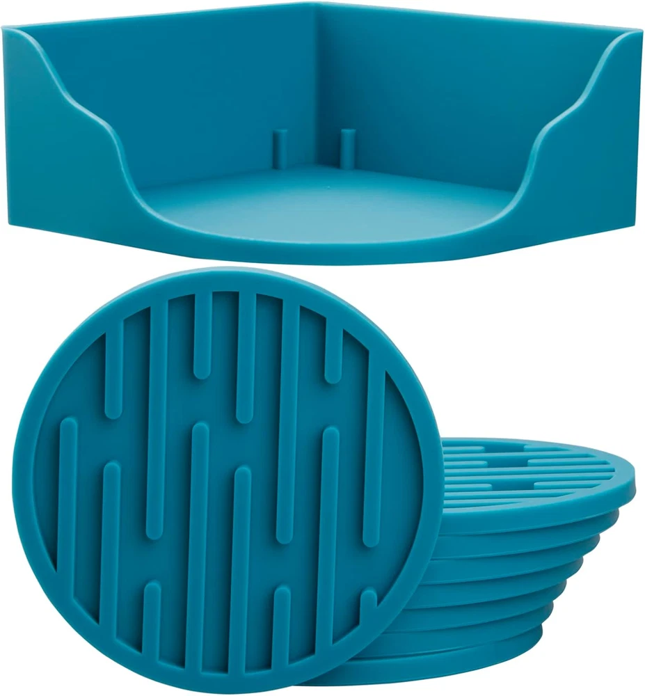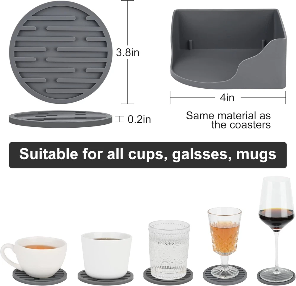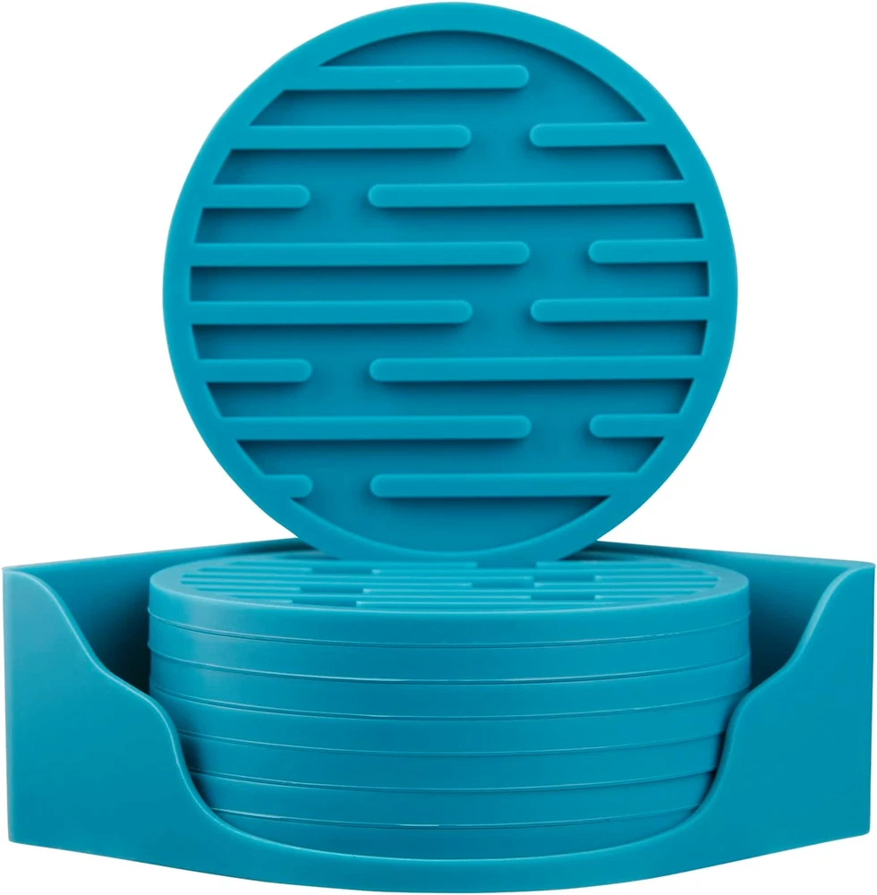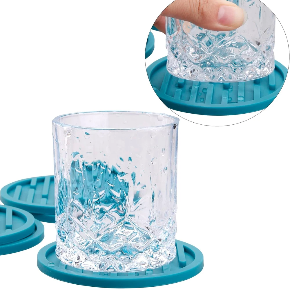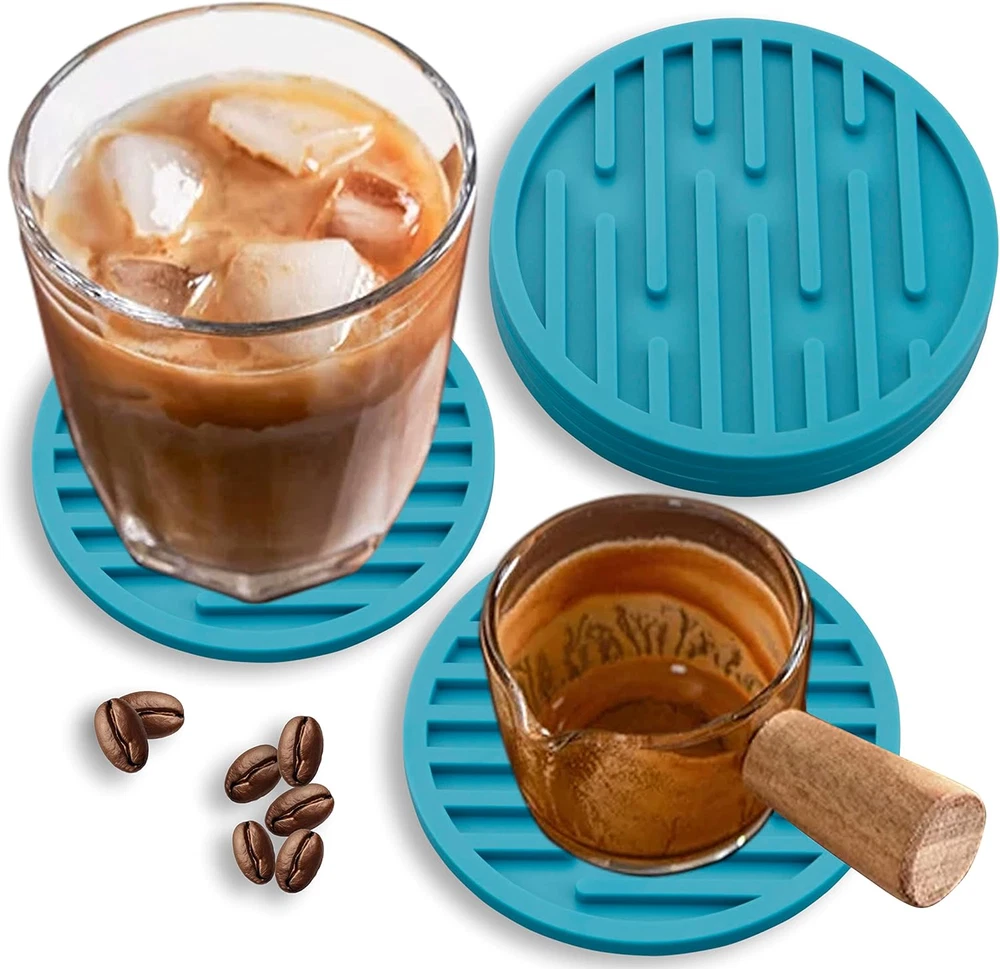Coasters for Drinks, Coaster Set 8, Silicone Drink Coasters for Coffee Wood Tabl