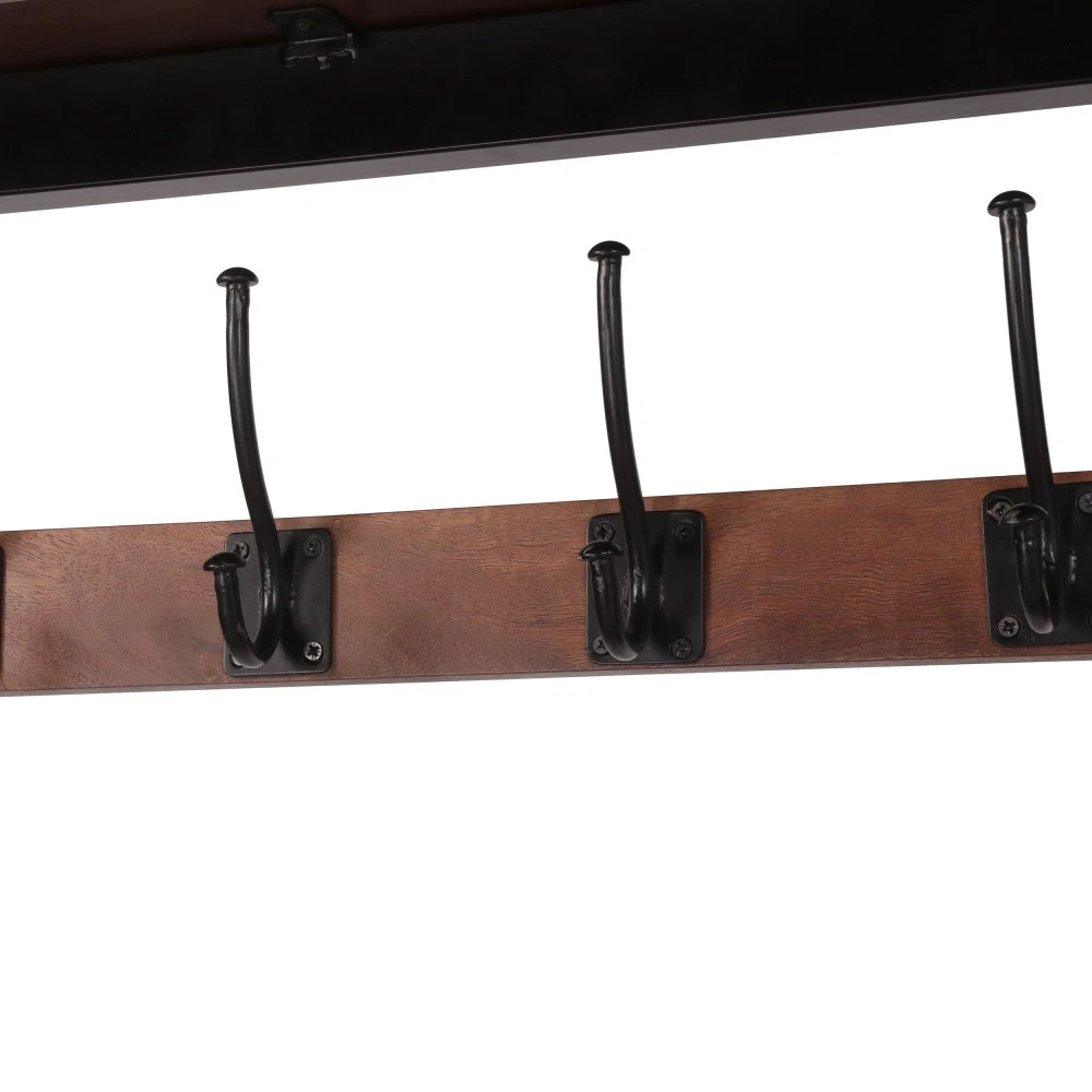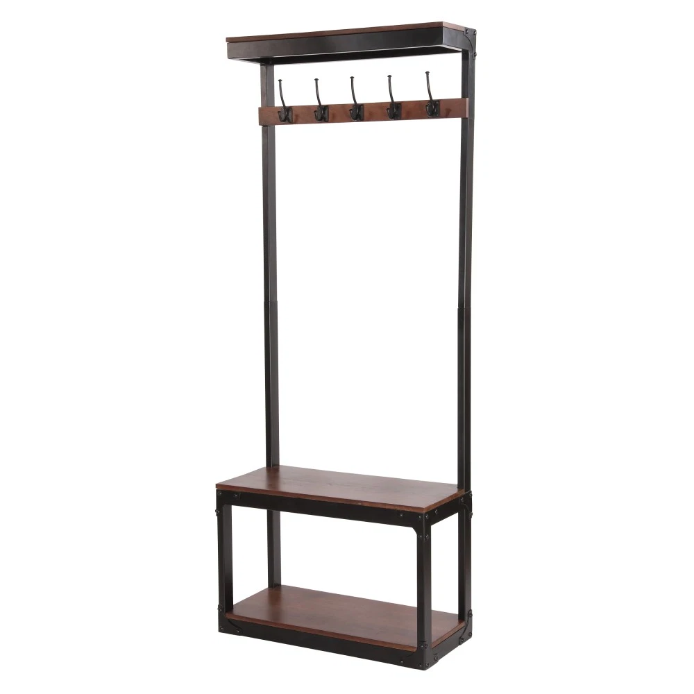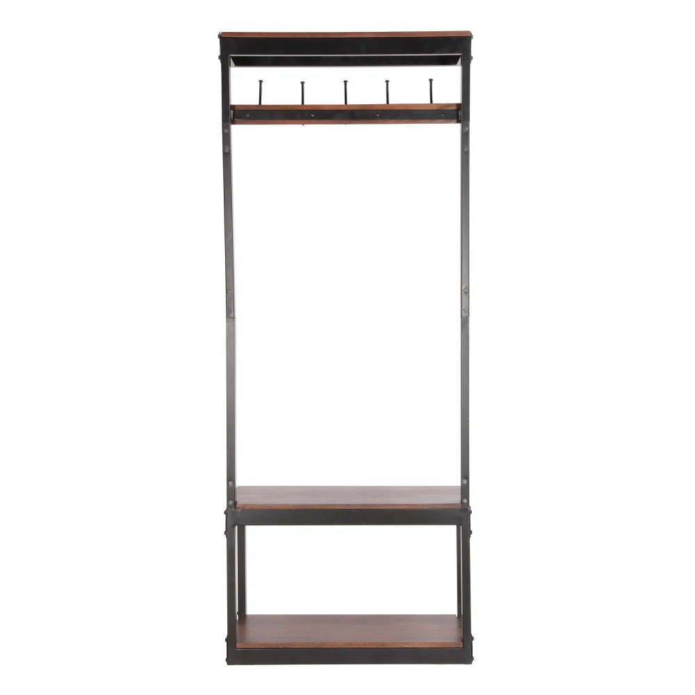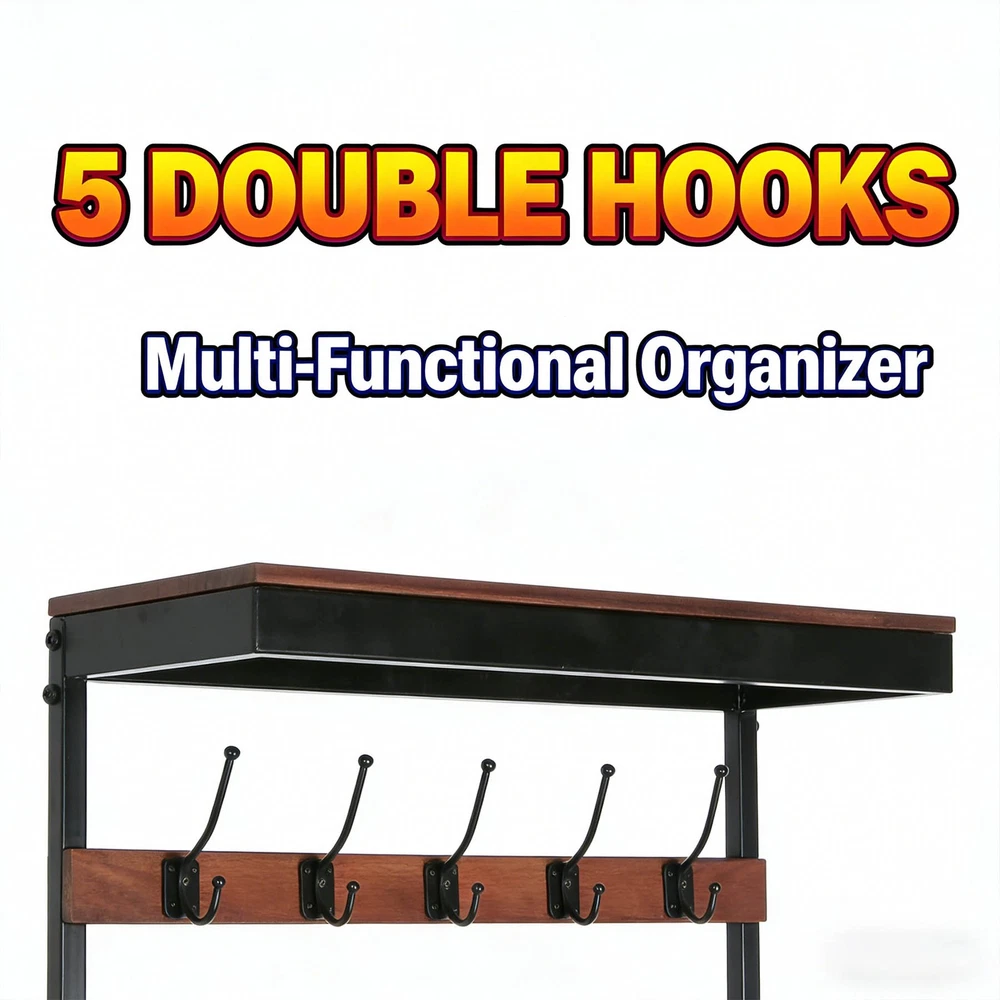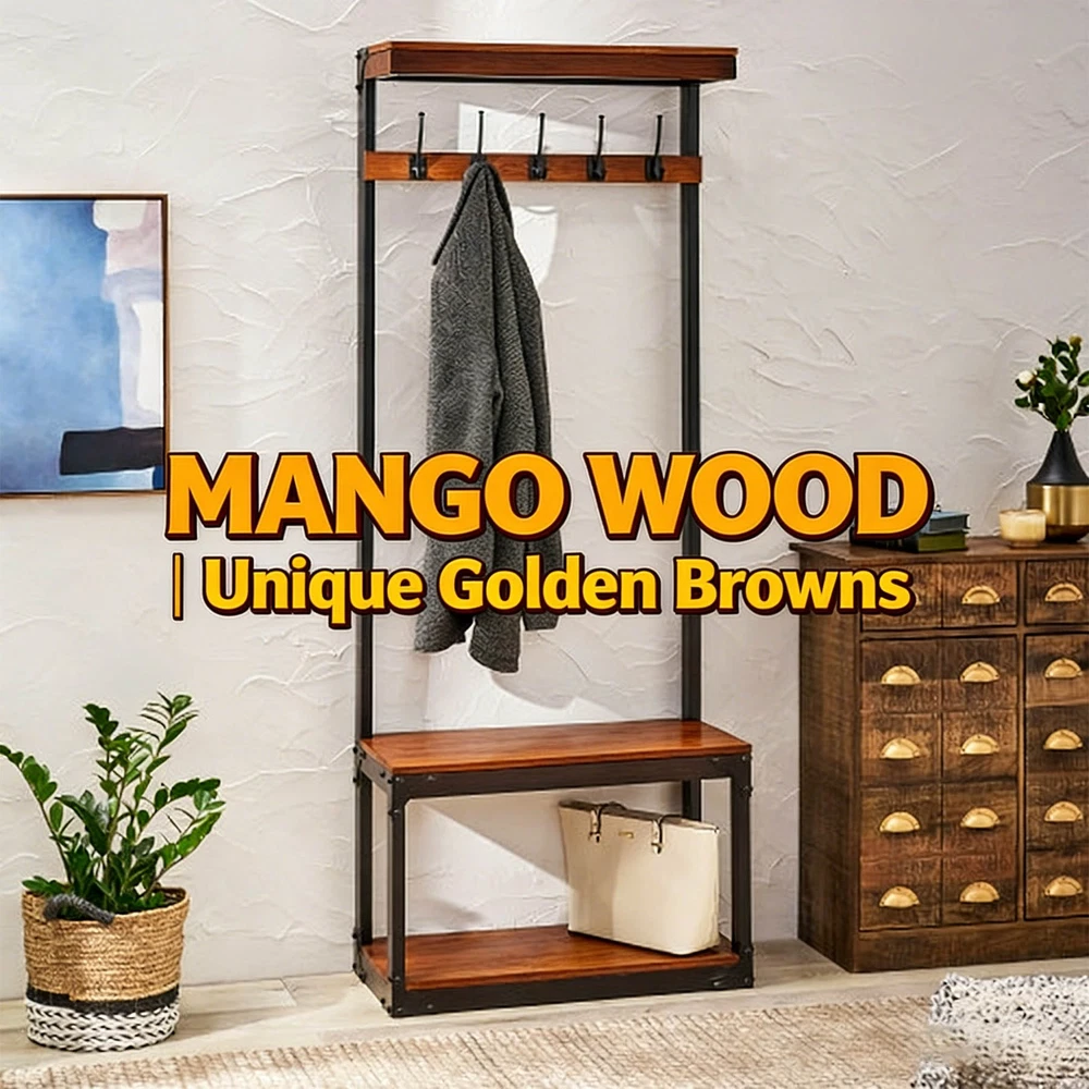 Coffee Mango Wood Coat Stand with Storage Bench | Modern Industrial Entryway Organizer Product Highlights ✅ 2-in-1 Multi-Functional Design : This handcrafted coat rack bench combines 10 sturdy hooks (5 double hooks) for hanging coats, hats, scarves, and towels, plus a spacious bench with hidden storage for shoes, bags, and clutter—ideal for foyers, entryways, or mudrooms.✅ Premium Mango Wood & Iron Build : Crafted from gorgeous, durable mango wood with unique natural spalting patterns and a powder-coated iron frame, this piece resists wear and tear while boasting one-of-a-kind color variations.✅ Modern Industrial Aesthetic : Sleek metal frames contrast beautifully with smooth natural wood, adding a chic, understated vibe to any home decor style.✅ Artisan Handcrafted Quality : Each piece is expertly made by artisans—natural variations in wood grain and color are not flaws, but proof of its unique, one-of-a-kind craftsmanship.✅ Perfect Size for Entryways : 29.50” W x 13.75” D x 75.50” H dimensions with a 19.25” bench height fit seamlessly in compact spaces without sacrificing storage capacity.✅ Easy Care : Simply wipe clean with a dry cloth as needed to keep it looking brand new. Technical Specifications Color : Coffee Main Material : Solid Mango Wood Frame & Leg Material : Powder-Coated Iron Assembled Dimensions : 29.50” L × 13.75” W × 75.50” H | Bench Height: 19.25” Net Weight : 61.73 lbs Package Dimensions : 33.50” L × 26.00” W × 19.50” H Gross Weight : 77.89 lbs Care Instructions : Wipe clean with a dry cloth when needed After-Sale Guarantee ✅ 1-Year Warranty : We stand behind our craftsmanship—enjoy a 1-year warranty against manufacturing defects for worry-free shopping.✅ 30-Day Free Return & Exchange : Not satisfied with your purchase? Return or exchange your coat stand bench within 30 days of delivery, no questions asked. Ideal For Entryways, foyers, mudrooms, and even bedrooms—keep your space organized and stylish with this practical, eye-catching coat rack bench!