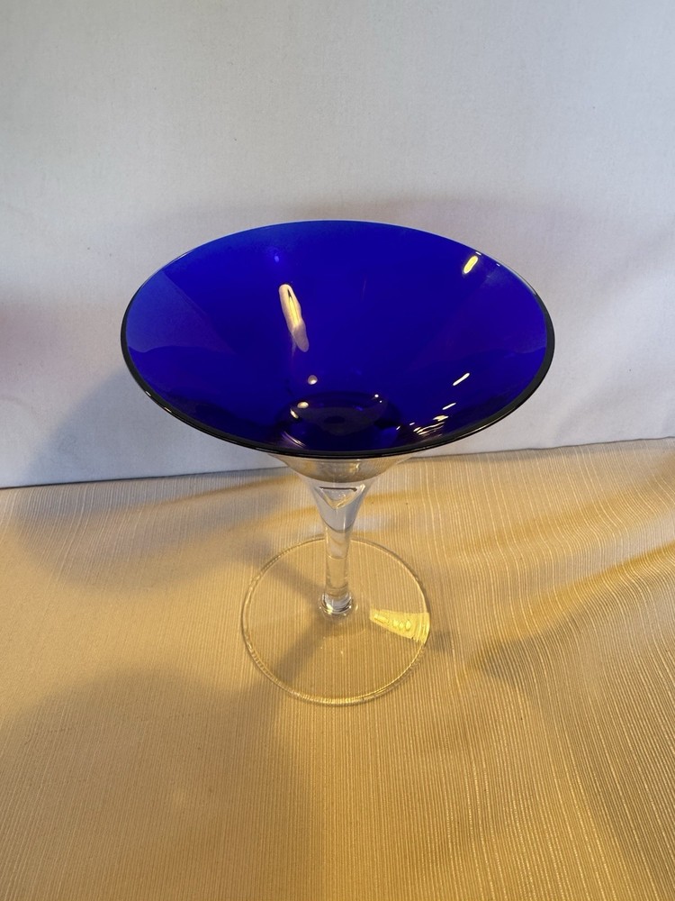 ~ BLOCK CRYSTAL ~ CLEAR & COBALT BLUE ~ "TEARDROP" STEMWARE ~ CRYSTAL MARTINI GLASS ~ Approximately 7" Tall. Never used.