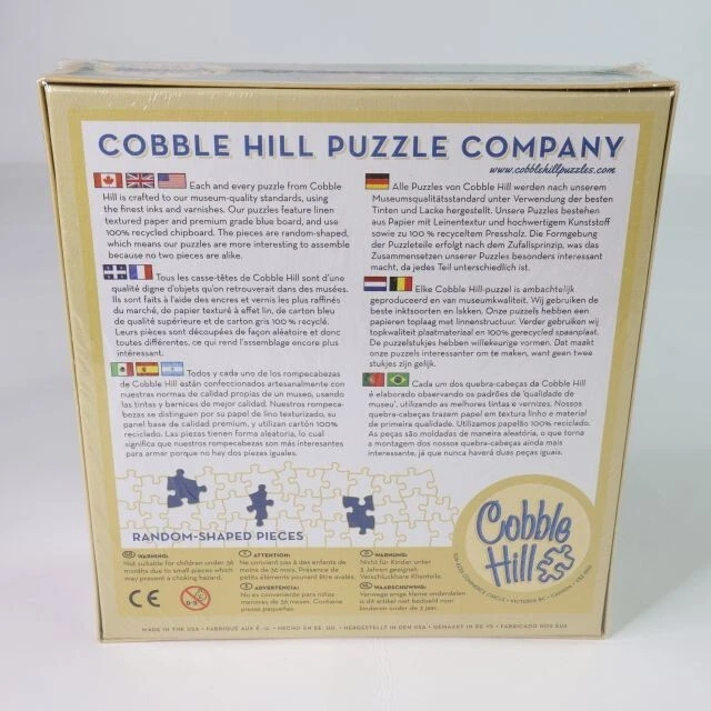This 1000-piece Cobble Hill puzzle features the serene artwork "Fireside" by Jim Hansel. The puzzle measures 26.625" x 19.25". Sealed and in good condition.