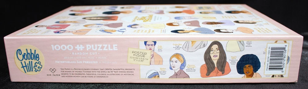 This Cobble Hill "Nevertheless, She Persisted" jigsaw puzzle features the theme of Famous Strong Women and includes 1000 puzzle pieces. The puzzle pieces are made of cardboard with a linen textured finish and are interlocking. Additionally, the puzzle pieces are bagged for easy storage and transportation. The puzzle is multi-colored and perfect for anyone who loves jigsaw puzzles or wants to add a fun and challenging project to their collection. Doing puzzles has some hidden benefits Excellent qualities: Cultivate concentration, patience, and temper your will Movement development: Train hand-eye coordination and precise small movements Spatial intelligence: Improve visual discrimination of colors and shapes Critical thinking ability: Understand the relationship between parts and the whole, and draw inferences from one example to explore the future Relaxes your mind: Relieve work pressure and release yourself Brain development: Enhance memory and may help prevent or slow brain degeneration We have not worked nor have we counted the puzzle pieces, but we will certainly do so at your request. Puzzle pieces are all bagged. Each item we ship is carefully packaged to prevent any damage and is shipped immediately with tracking. Anticipated Benefits of Puzzles for Children Overcoming attention deficit Strengthening visual memory Improving problem-solving skills Strengthening hand-eye coordination Improve fine motor skills Improve gross motor skills Shape recognition ability Gain the ability to set goals Learning patience