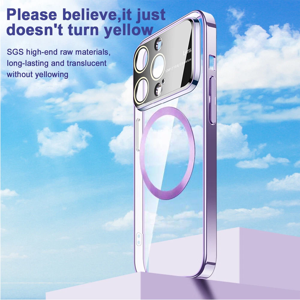 ¡¡¡Nota: Sin película protectora de pantalla, por favor, compruebe su modelo correcto !!! ( Cualquier pregunta sobre nuestros artículos, por favor póngase en contacto con nosotros en primer lugar, le responderemos dentro de 24 horas, y le dará la mejor solución, gracias de antemano. ^_^ ) Características: 【Exquisito Botones táctiles】Fácil acceso a todos los botones, control y puertos sin quitar el caso. 【Camera Lens Protection】Proporcionar una cobertura completa sobre la lente de la cámara para protegerla de daños en caso de caídas. 【Mag Safe Compatiable】Incluye un anillo magnético integrado que es compatible con accesorios habilitados para MagSafe, como cargadores inalámbricos, soportes para coche y tarjeteros magnéticos. Asegura una fuerte conexión magnética. 【Unique Transparent Design】Evita que la funda se ensucie o amarillee, a diferencia de otras fundas, lo que le permite gastar menos pero tener una protección más duradera para su querido teléfono. 【Skin-Friendly & Anti-Scratch】Proporciona una sensación de tacto sedoso agradable a la piel. Fácil de limpiar con un paño suave para eliminar las huellas dactilares visibles. 【Slim & Comfortable Grip】Cabe fácilmente en bolsillos estrechos. Proporcionar el agarre perfecto. El paquete incluye: 1 * Funda magnética para teléfono con protector de lente de cámara(SIN protector de pantalla frontal )