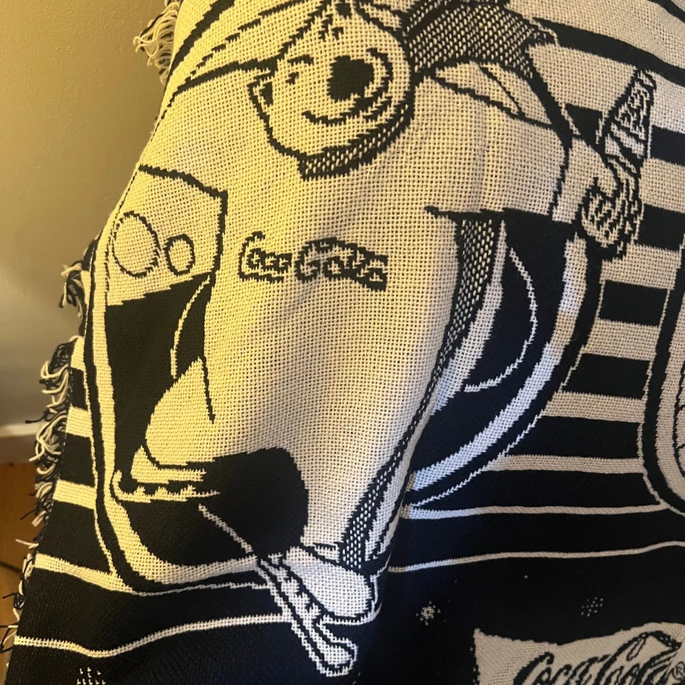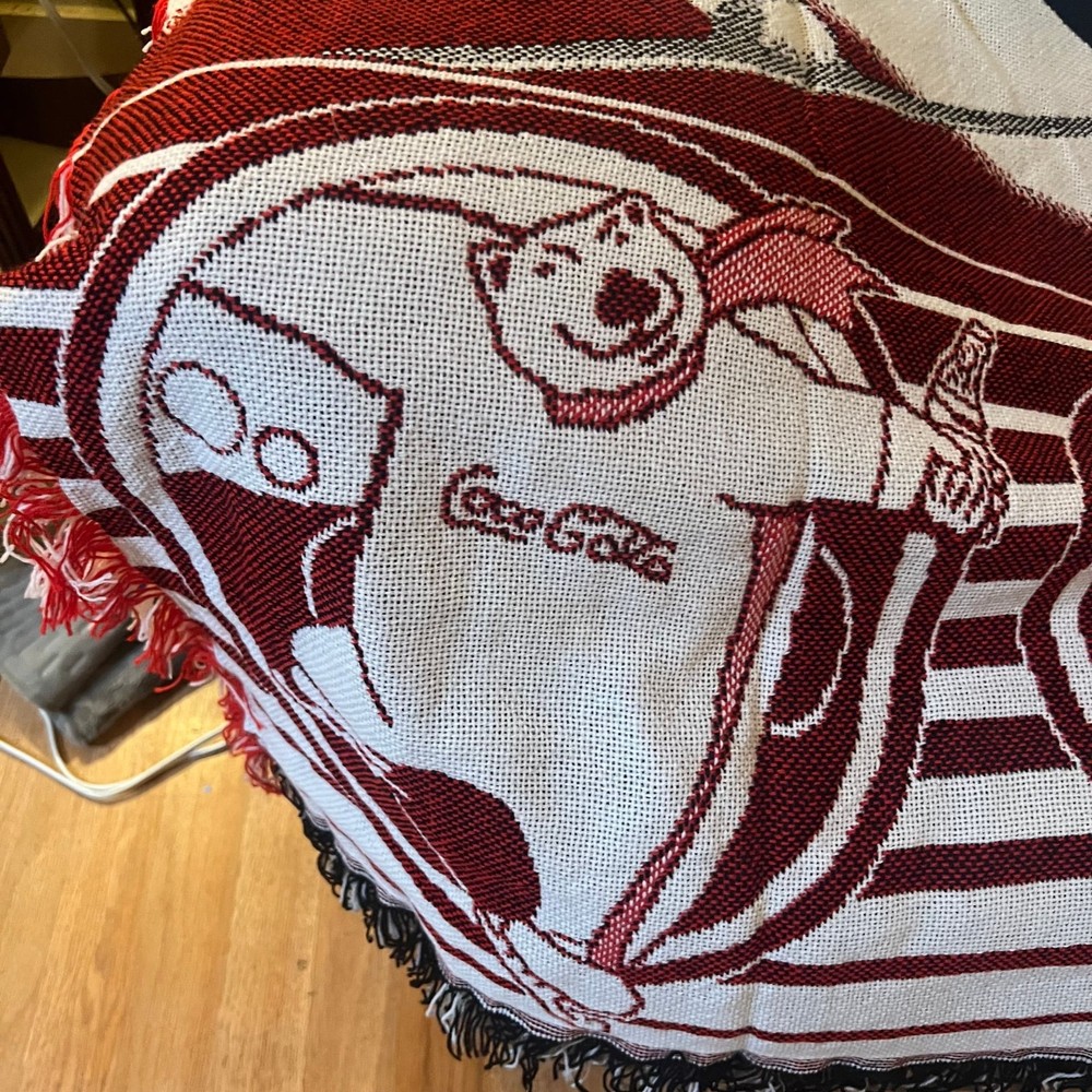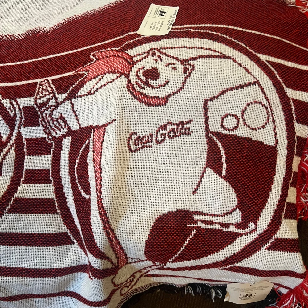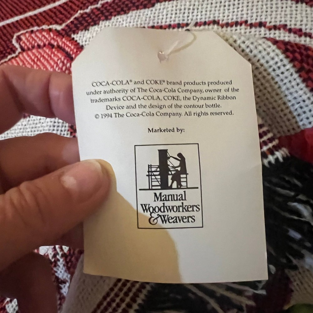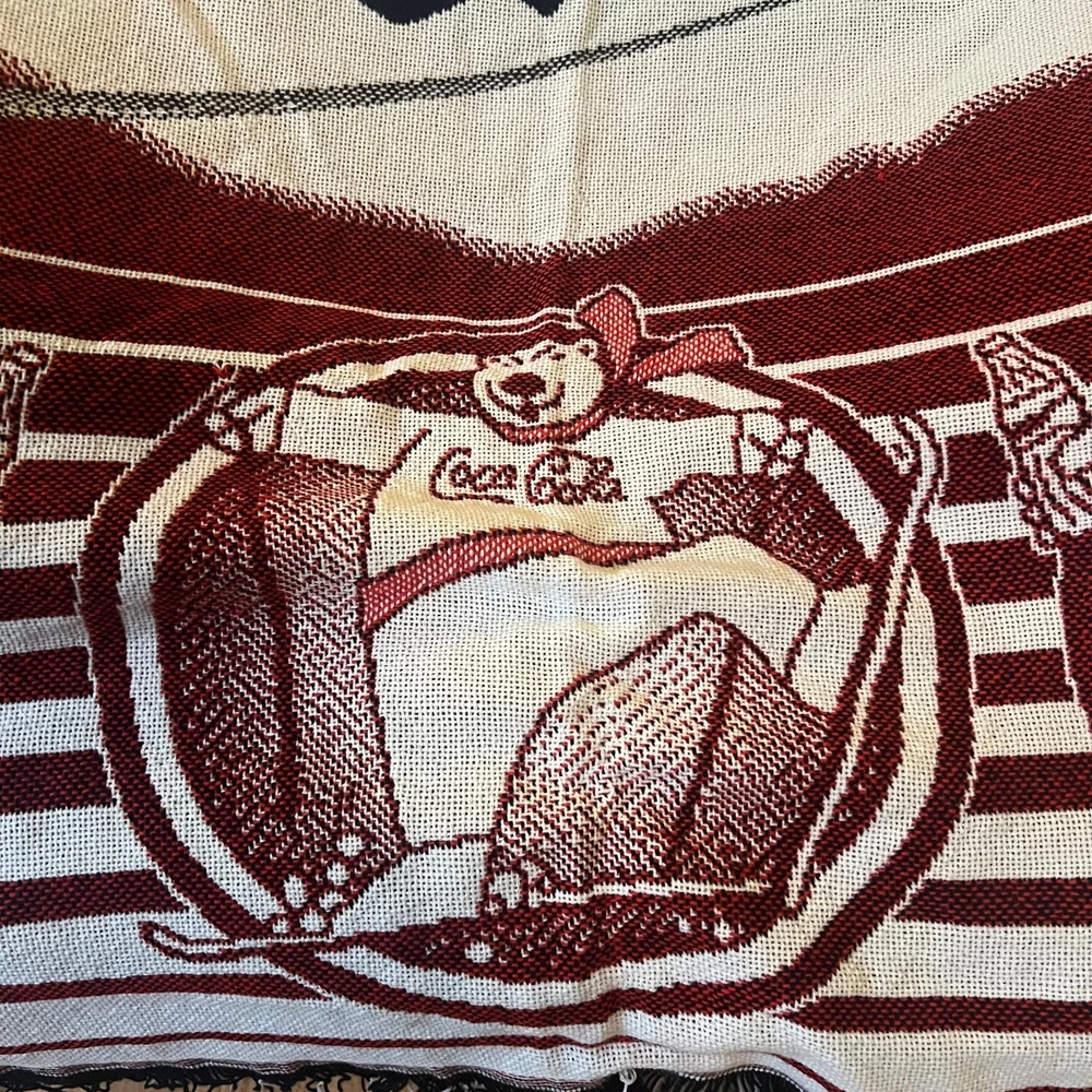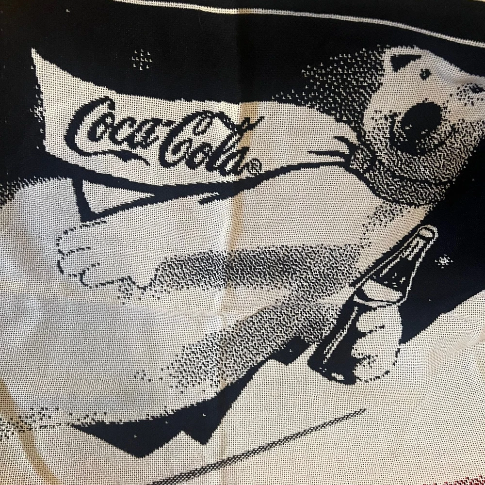 Vintage Coca-Cola Polar Bear knit tapestry, new with tags (NWT). 1994 Y’all !!!!! This charming throw blanket features iconic Coca-Cola polar bear designs, perfect for collectors or adding a nostalgic touch to your home decor. Crafted from 100% acrylic and woven in the Carolinas, it's an authorized Coca-Cola product from 1994, marketed by Manual Woodworkers & Weavers. Ideal for a cozy throw or a decorative wall hanging. Measures approximately 50x60 inches.