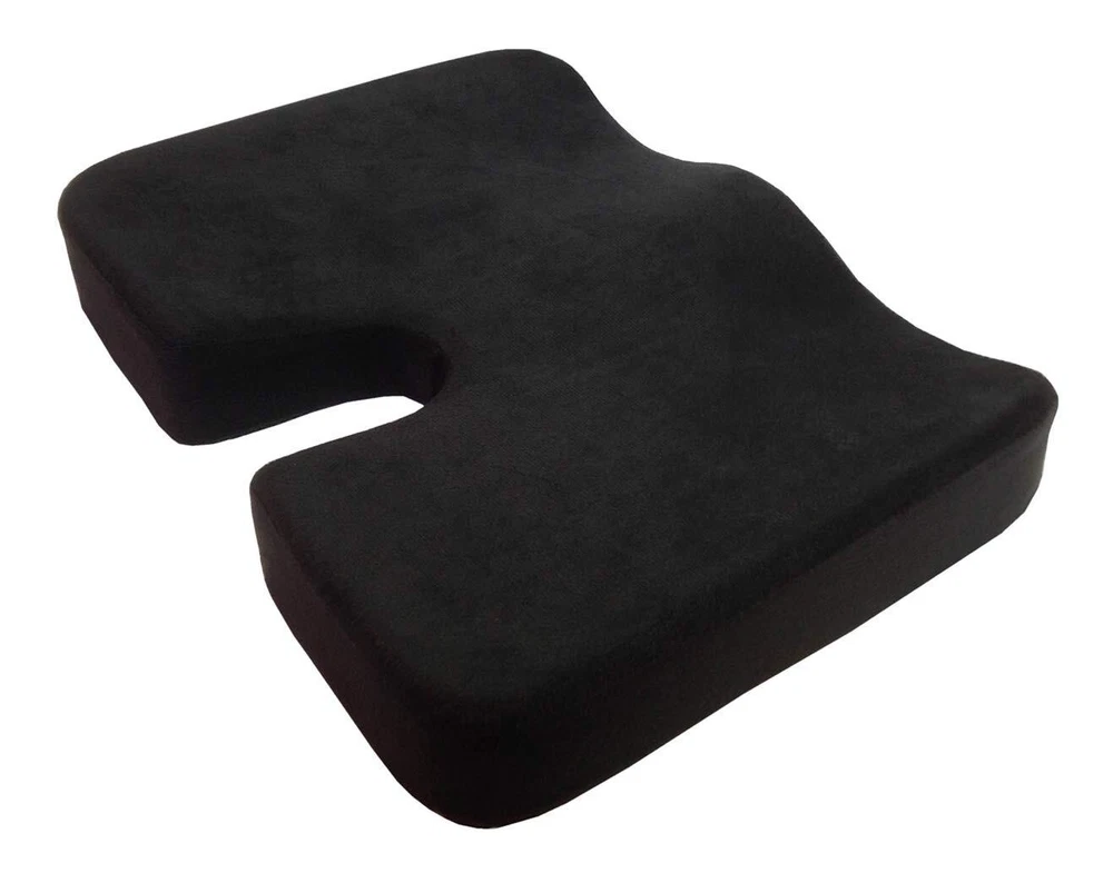 This orthopedic superior grade memory foam cushion will add relief and comfort to any chair, bench, car seat, plane seat, wheelchair, or floor. The cooling gel-enhanced technology stabilizes temperature by reducing trapped body heat in the cushion and relieves pressure points. The specially designed U-shape contoured cushion provides relief from pain and tension, and promotes good posture, proper spine alignment, healthy weight distribution, and ultimate comfort. Made from the highest quality memory foam, this cushion will not flatten out from prolonged use like other cushions. The firm density of the cushion provides extra support. The breathable velour cover can be removed from the rear zipper for easy cleaning. The non-slip bottom keeps the seat cushion in place on any surface. Recommended for: Extra cushioning for any chair Relief of pain, tension, or numbness from prolonged sitting Bed Sores Long hours of office work, flights, car rides, or wheelchair Lower back pain Fractured, bruised, inflamed, or broken tailbone Pelvic and hip pain relief Relief of sciatic tension and nerve damage Herniated, slipped, or bulging discs MAXIMUM RELIEF AND COMFORT: Ultra premium memory foam layered with soothing gel technology provides ultimate support and comfort. New larger design with more gel coverage than other gel cushions. Designed to relieve pain and tension from the lower back, coccyx (tailbone), hip, spine, and sciatic areas. Firm density provides extra support. DURABLE: 100% Premium therapeutic grade memory foam combined with gel. Will not flatten out with prolonged use. Non-slip bottom ensures the cushion stays in place and will not shift or slide on any surface. ERGONOMIC: Promotes good posture, spine alignment, and healthy weight distribution for hours of comfortable sitting. USE ON ANY SEAT: Superior comfort for any chair, bench, car seat, plane seat, or wheelchair. EASY CLEANING: Removable velour cover is machine washable for easy cleaning.