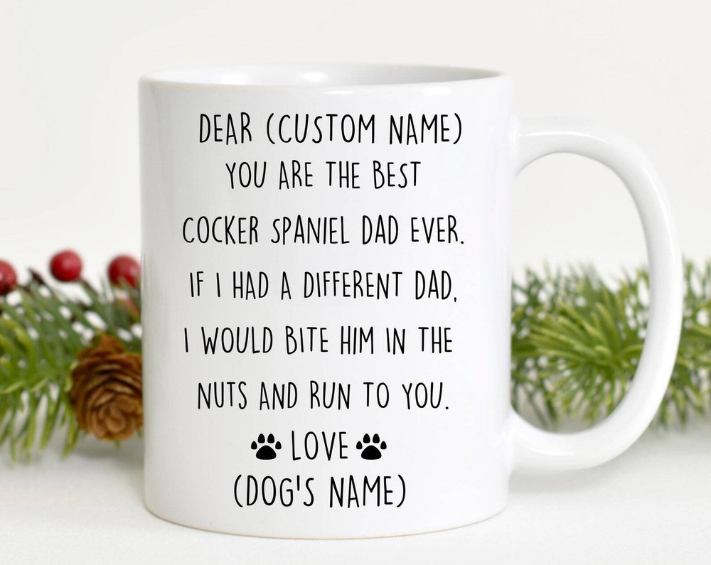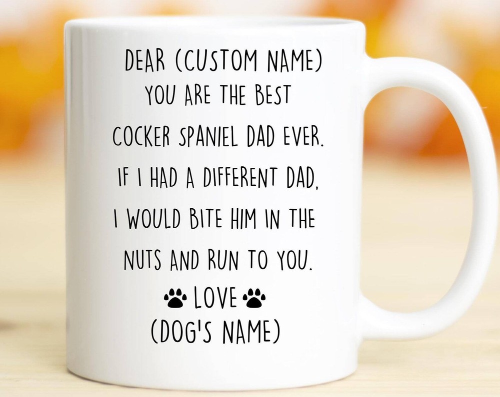 Cocker Spaniel Dad Birthday Gift Cocker Dad Christmas Gift Cocker Dad Valentine Gift Cocker Dad Appreciation American Cocker Spaniel Dad Product Details.. This high quality 11oz. ceramic white mug has a premium hard coat that provides crisp and vibrant color reproduction sure to last for years. Perfect for all hot & cold beverages. The highest quality printing possible is used. It will never fade no matter how many times you wash it. Material: 100% Ceramic. Print both sides. Dishwasher and Microwave Safe. High Gloss + Premium White Finish. Printed in the U.S.A. Personalized & Custom. We support personalized and custom mug to add custom, when placing an order, you can add notes to the "order note" in shipping address section. Also you can contact us directly via message. Shipping Info. Ready to ship in 1 to 2 business days, All products are made-to-order and proudly printed in the United States. Shipped by USPS and DHL, You will receive your order in 5-7 days. Replace & Refund. All products are defective during shipping broken, chipped will be replaced free of charge. You are not satisfied with the product, we will refund 100% money to you. If any other issues arise, please do not hesitate to message, we would be more than happy to assist you.