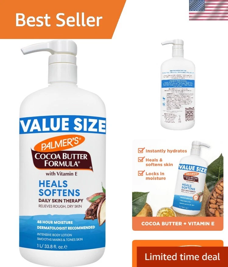 Cocoa Butter Formula Daily Skin Therapy Lotion, 33.8 oz - Luxurious Hydration ‹ › ‹ › ‹ › ‹ › ‹ › ‹ › ‹ › ‹ › ‹ › ‹ › Cocoa Butter Formula Daily Skin Therapy Lotion Luxurious Hydration in a 33.8 oz bottle Product Features: Emollient-rich formula designed for all skin types, from normal to dry, including eczema-prone skin. Helps heal and soften, leaving skin smooth, supple, and beautifully radiant. Luxurious moisturizing formula absorbs quickly, providing 48-hour moisture. Natural Cocoa Butter transforms dry, rough patches into soft and hydrated skin. Enriched with Vitamin E, improving the appearance of scars, stretch marks, and other imperfections for an even-toned complexion. Committed to using only the finest natural and raw ingredients for your beauty needs. Supports sustainable production of Shea & Cocoa Butter and Coconut Oil worldwide. Benefits: Deep moisturizing to restore hydration and softness. Improves skin appearance and texture, making it ideal for everyday use. Vegan-friendly and free of parabens and phthalates, ensuring a pure and gentle application. Trusted quality - has offered high-quality natural products for over 180 years. Versatile enough for body, face, and even hair care, giving you a complete pampering experience. Why Choose Our Cocoa Butter Formula? Indulge your skin with the luxurious hydration of our Cocoa Butter Formula Daily Skin Therapy Lotion. Crafted with intensively moisturizing Cocoa Butter and enriching Vitamin E, this body lotion is dedicated to healing and softening rough, dry skin. Embrace the confidence of beautifully hydrated skin that feels smooth and looks radiant. As America's #1 Cocoa Butter product, we pride ourselves on delivering outstanding natural care solutions that have been trusted by generations. Choose what's real, and elevate your skincare routine with —an investment in health and beauty you won’t regret. Order your 33.8 oz bottle today and experience the difference! Shipping Free & Fast Shipping - We offer free shipping to most of the USA with a normal delivery time of 3-7 days. However, due to the current situation, additional delivery time (up to 3 weeks) may be required for some items. Alternative Carriers - We may use alternative carriers (e.g. USPS, FedEx, UPS, etc.) to ensure your package arrives safely and on time. Due to the use of multiple carriers, we are unable to provide a tracking number automatically. Handling Time - Orders are processed and shipped within 1-2 business days of receiving cleared payment. Shipping Restrictions - Shipping to Alaska, Hawaii, Puerto Rico, Guam, and other US territories may incur shipping charges or delivery restrictions. Please contact us before ordering, or your order can be refunded/cancelled. State Restrictions - There may be restrictions based on your state of purchase. For example, certain items may not be shipped to California due to state regulations. Contact for Tracking Updates - If you require tracking updates or have any concerns about the delivery of your order, please feel free to contact us, and we will be happy to assist you. Return 30-Day Hassle-Free Returns - We want you to be completely satisfied with your purchase. If you are not, you can return the item within 30 days of receiving it for a full refund or exchange. Easy Return Process - To start a return, simply contact us and we will provide you with a prepaid return shipping label and detailed instructions. Restocking Fee - There are no restocking fees for returns. However, the buyer is responsible for return shipping costs if the return is not due to a seller's error. Refund Processing Time - Refunds will be processed within 5 business days of receiving the returned item in its original condition. Payment We accept all major credit cards, PayPal, and Apple Pay for your convenience. Your payment information is secure and encrypted to ensure a safe and seamless transaction. Please complete your payment within 3 days of purchase to avoid any delays in shipping. Feedback Your feedback is extremely important to us. We strive to provide the best products and customer service possible. If you are satisfied with your purchase, please take a moment to leave us a positive review. If you have any concerns or issues with your order, please contact us before leaving negative feedback. We are committed to resolving any problems and ensuring your satisfaction. Contact Us If you have any questions or concerns, please feel free to reach out to our customer support team. You can contact us through the eBay messaging system. We are available Monday to Friday, 9:00 am to 5:00 pm EST, and we will do our best to respond to your inquiry within 24 hours. Buy it now and enjoy a pleasant shopping experience! UPC: Not Set Expiration Date: Cocoa Butter Lotion Unit Quantity: 1 Body Area: Arm,Face,Full Body,Hand,Leg Ingredients: Cocoa Butter,Coconut Oil,Shea Butter,Vitamin E,Olive Oil Main Purpose: Moisturizer,Stretch Mark Treatment Features: Hydrating,Paraben-Free,Phthalate-Free,Vegan,Natural Ingredients,Cruelty-Free Active Ingredients: Vitamin E,Cocoa Butter Formulation: Lotion Scent: Cocoa Butter Set Includes: Pack of 1 Brand: Unbranded Type: Daily Use Size: Regular Product Line: Not Set Color: Multicolor Sun Protection Factor (SPF): Not Set Volume: 33.8 fl oz UVA Protection: Not Set MPN: Not Set Period After Opening (PAO): Not Set Department: Unisex Skin Type: All Skin Types Country/Region of Manufacture: Not Set Unit Type: fl oz