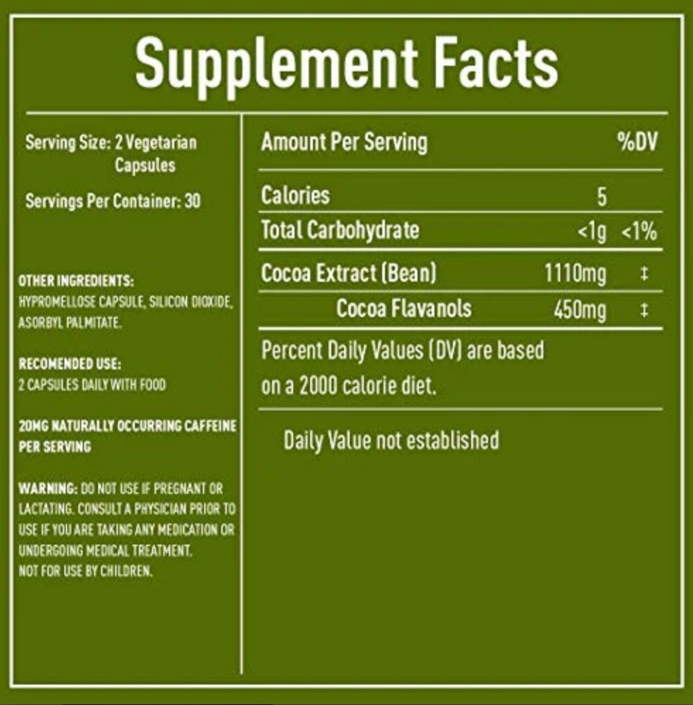 CocoaVia Heart & Brain Supplement, 60 Day, 450 mg Cocoa Flavanols, Memory & Circ Brand: CocoaVia Color: 450mg Features: BACKED BY SCIENCE: Includes the clinically proven ingredient Cocoa Flavanols for long term heart & cognitive health; Contains the same Ingredient Cocoapro as the Harvard led COSMOS study. Backed by over 20 years of scientific research. SUPPORTS CARDIOVASCULAR HEALTH: CocoaVia supplements help maintain healthy blood vessels and flexible arteries to increase blood flow for more energy and vitality. COGNITIVE SUPPORT & NITRIC OXIDE SUPPLY BOOSTER: Cocoa flavanols naturally increase nitric oxide levels, which help deliver essential oxygen and nutrients to your whole body. By improving circulation, CocoaVia helps to nourish your brain for better cognitive function CONTAINS CAFFEINE: 20 mg naturally occurring caffeine per serving. Each serving (2 capsules) contains 450 mg of cocoa flavanols, the plant-based nutrient derived from cocoa beans. Cocoa flavanols work best when taken daily. We recommend consuming with food for maximum benefit QUALITY: CocoaVia's highly concentrated extract contains 5 times more cocoa flavanols per serving than the leading dark chocolate bar and 15 times more cocoa flavanols than the leading cocoa powder Binding: Health and Beauty Release Date: 22-08-2019 Part Number: B07WV68RQL Details: Introducing our new & improved CocoaVia capsules – now with 20% more cocoa flavanols per serving! The cocoa flavanols in CocoaVia have been scientifically shown to improve cognitive function and cardiovascular health by promoting healthy blood flow. By supplying high levels of oxygen and nutrients to your heart and brain, our supplements help you look and feel your best from the inside out. Each serving (2 capsules per serving) contains 450 mg of cocoa flavanols, the powerful plant-based nutrients derived from cocoa beans. Taken daily, CocoaVia heart and brain health supplements can ensure you're performing at your best, every day. EAN: 0850487002482 Package Dimensions: 4.2 x 1.9 x 1.8 inches CocoaVia Heart & Brain Supplement, 60 Day, 450 mg Cocoa Flavanols, Memory & Circ Shipping We offer fast and reliable shipping. Most items are carefully packaged and shipped within 1–2 business days. Please note that we do not ship on weekends (Saturday and Sunday). Contact Us Customer satisfaction is very important to us. If you have any issues with your order, please contact us first. We will do our best to resolve the issue promptly. We usually respond within 24–48 hours. Visit Our Store Please visit our eBay store to see more items in the Vitamins & Minerals category. Thank you for shopping with us.