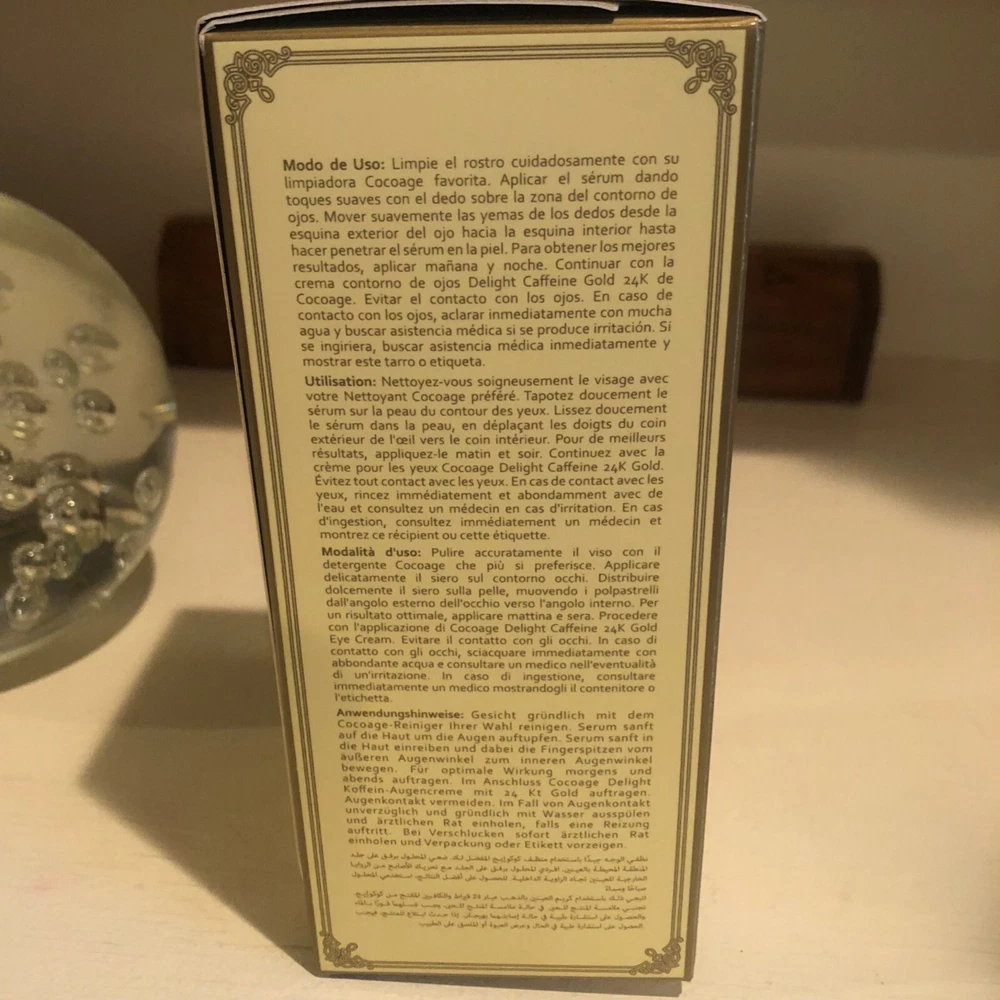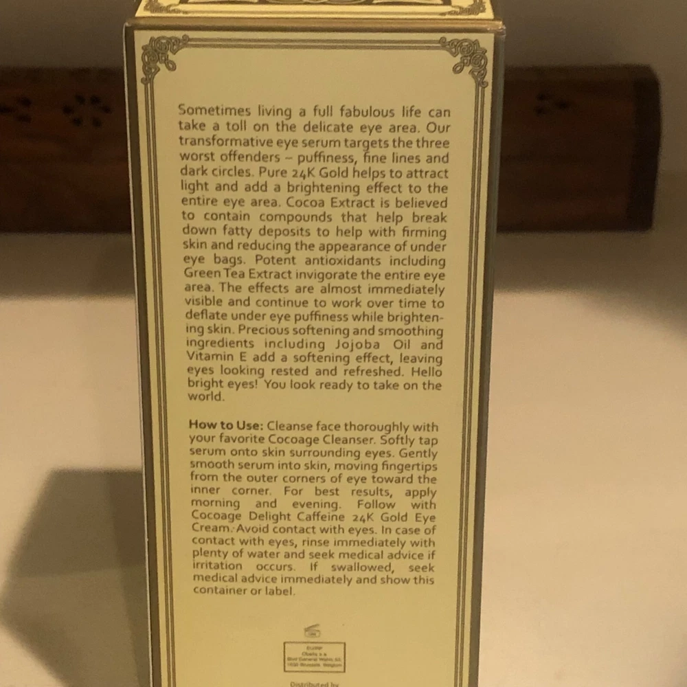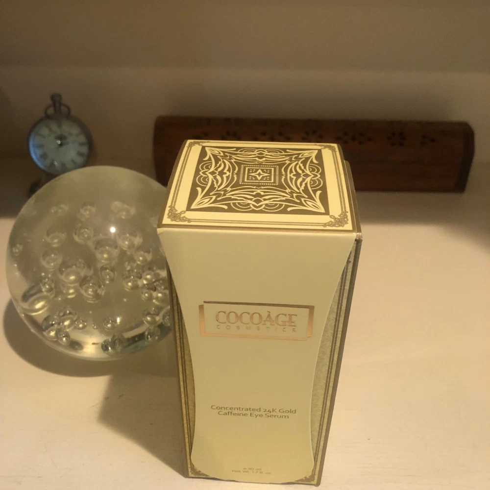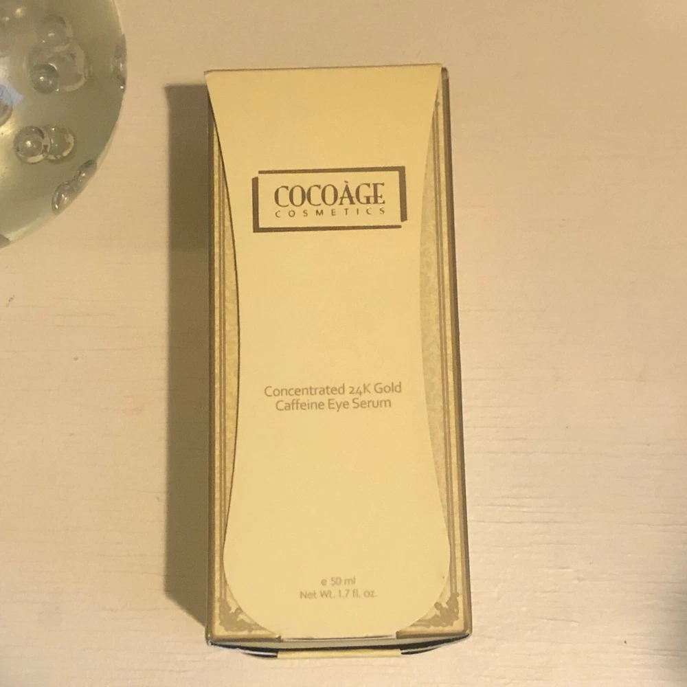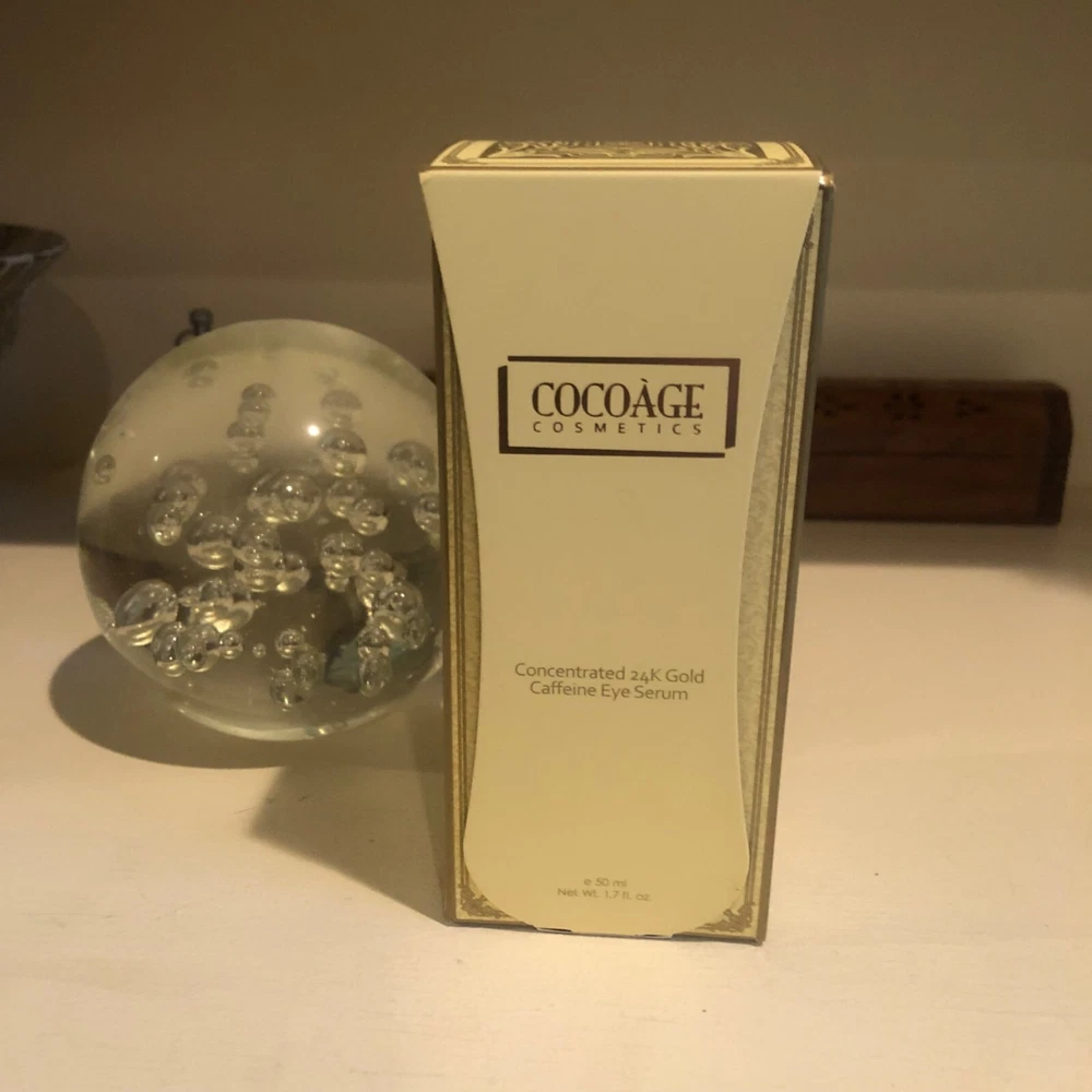 Cocoage Concentrated 24K Gold Caffeine Eye Serum 50ml. BRAND NEW / UNOPENED BOX ******Regular MSRP is $795****** Sometimes living a full fabulous life can take a toll on the delicate eye area. Our transformative eye serum targets, the three worst offenders -- *Puffiness, *Fine Lines, and *Dark Circles. Pure 24 karat gold helps to attract light and add a brightening effect to the entire eye area. Coco extract is believed to contain compounds that help break down fatty deposits to help with firming skin and reducing the appearance of under eye bags. Potent antioxidants, including green tea extract invigorate the entire eye area. The effects are almost immediately visible, and continue to work overtime to deflate under eye puffiness while brightening skin, precious, softening and smoothing ingredients, including Jabba oil and vitamin E adds a softening effect, leaving eyes looking, rested, and refreshed. **24K Gold: Brightens the eye area and help reduce the breakdown of Elastin **Caffeine: helps to reduce puffiness and fine lines **Cocoa Extract: Stimulates Blood flow and increase cell turnover ** Antioxidants: Such as Green Tea Extract, to invigorate the eye area ** Other Ingredients: Jojoba Oil and Vitamin E for softening and Peptides to target wrinkles ** Antioxidants: Such as Green Tea Extract invigorates the eye area I have highly discounted this serum...If you have any questions feel free to message me..