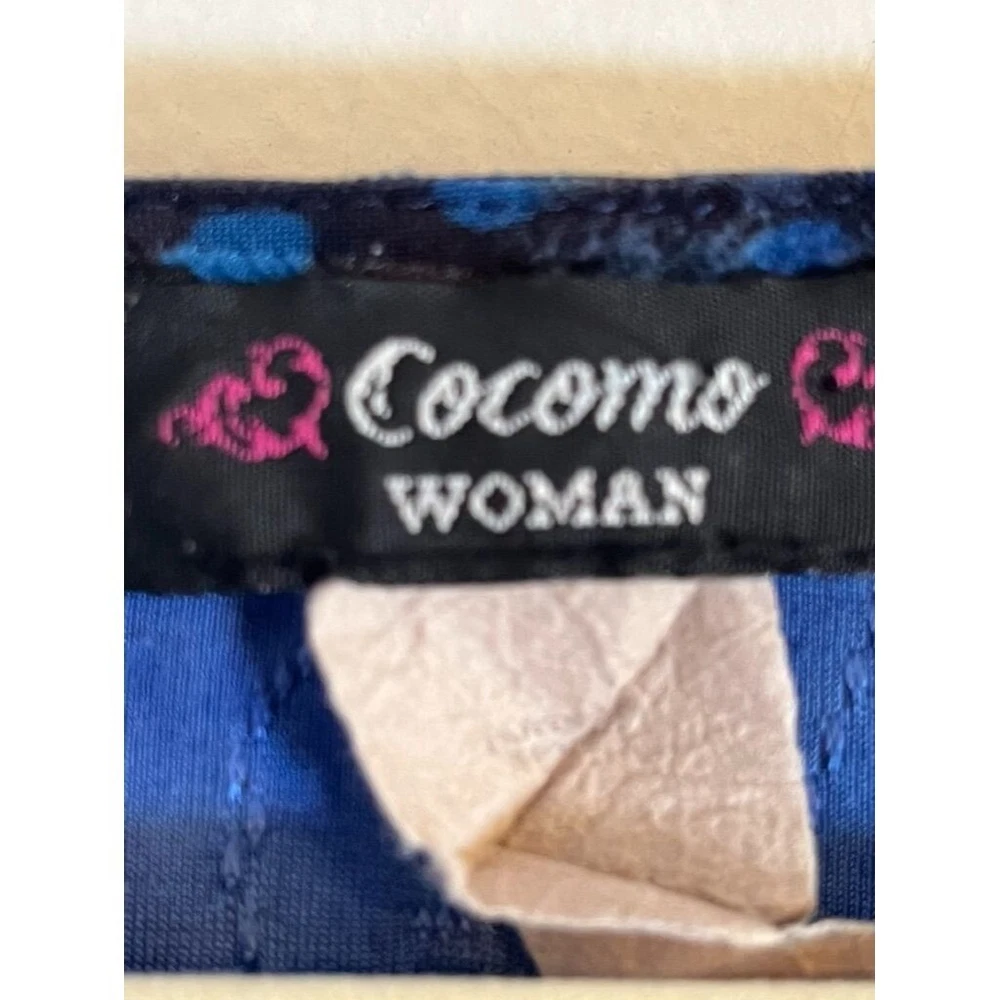 Cocomo Women Top Size 2X Blue V Neck Pullover Black Snake Skin Pattern Ties Plus