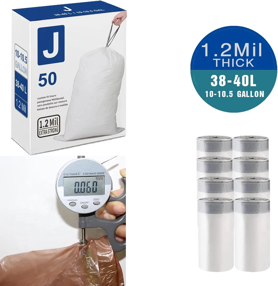 Store New Arrivals Add to Favorite View Feedback Contact Code J 2 Packs(100 Count) 10-10.5 Gallon Heavy Duty 1.2 Mil THICK Drawstring Plastic Trash Bags Compatible with Simple Code J | 1.2 Mil | White Garbage Can Liners 1.2 Mil Leak-Proof & Tear Resistant Description Item model number 792119976894 Part Number 792119976894 Item dimensions L x W x H 0.79 x 2.36 x 3.54 inches Size 50 Count (Pack of 2) Capacity 10.5 Gallons Number of Items 2 Unit Count 100.0 Count Color Code J Scent Unscented Material Plastic Style Code J Item Weight 6.3 pounds Batteries Included? No Material Feature Heavy Duty Batteries Required? No Recommended Uses For Product Food Waste Item Form Bag Product Dimensions 0.79 x 2.36 x 3.54 inches [CODE J] Compatible with Code J trash cans. Seamless Fit for 10-10.5 Gallon/38-40 Liter containers; [DRAWSTRING BAGS] 2 Packs(100 count) trash bags included.White trash bag with grey drawstring closure for easy tying and carrying. [HEAVY DUTY] Tear Resistant 1.2 Mil Thickness. Extra strong to tolerate all residential household garbage and commercial waste. Makes a great alternative and equivalent trash bags. [STRONG DRAWSTRING HANDLES] Reliable handles easily help lift, tie & carry trash bags without a tear.Quick-dispense pack lets you grab liners one by one without the hassle of hard-to-find perforations or messy unraveling.No rips, No Punctures. [Wide Application] This plastic trash bags not only used for kitchen trash can, but also for office, bedroom, living romm, bath room and car. Also store other books, clothing items, organizers of holiday decorations. Product Description ABOUT US We offer the best prices around on high quality products. Our E-store includes media such as books, movies, music and games while offering electronics, toys, sporting apparel, clothing, tools, general home, garden items and more. SHIPPING We are always working hard to ensure your package arrives as soon as possible. Please understand that some factors like weather, high postal traffic, and the performance of shipping companies are outside of our control. We offer free shipping to the lower 48 states and ship within 2 business days of payment, usually sooner. We do not accept P.O. Boxes. Please provide a physical address. For shipping outside of the continental USA, we only use eBay's Global Shipping Program.The item is shipped to KY and then sent to the rest of the world. International customers are responsible for all duties and taxes. Continue to check out in order to calculate costs for shipping the item to your country. Messages regarding eBay's Global Shipping Program MUST be directed at eBay EXCLUSIVELY. RETURNS We offer a 30-Day Return Policy on items which you are not completely satisfied with. You have the option for a full-refund or an exchange of the item. No returns are available on items shipped outside of the USA. PAYMENT We accept PayPal. CONTACT US This page content is yet to come Please ad us to your favorite seller and visit again later Thank You CUSTOMER SATISFACTION We try our very best to make sure every customer is completely satisfied. If there's a problem, message us! We're happy to help. WE ACCEPT Copyright © 2021 AutoDS. | All Rights Reserved