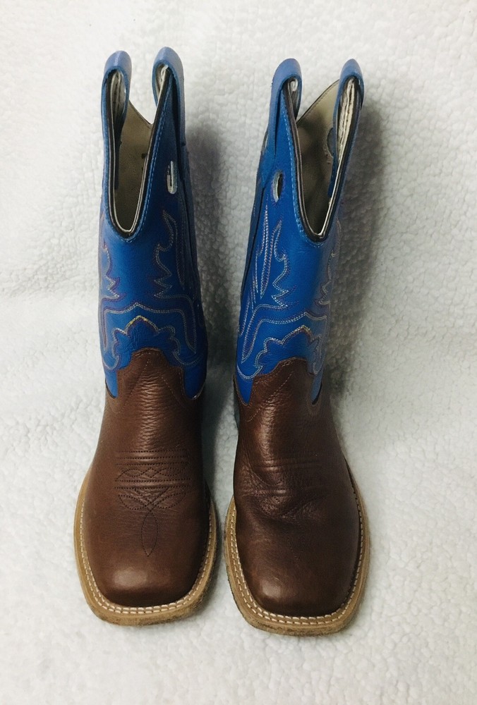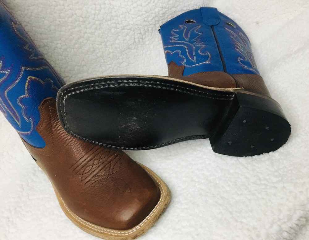 Boys youth Cody James old west blue/ brown leather cowboy boots upper made in India size 1.0-D. See the pictures
