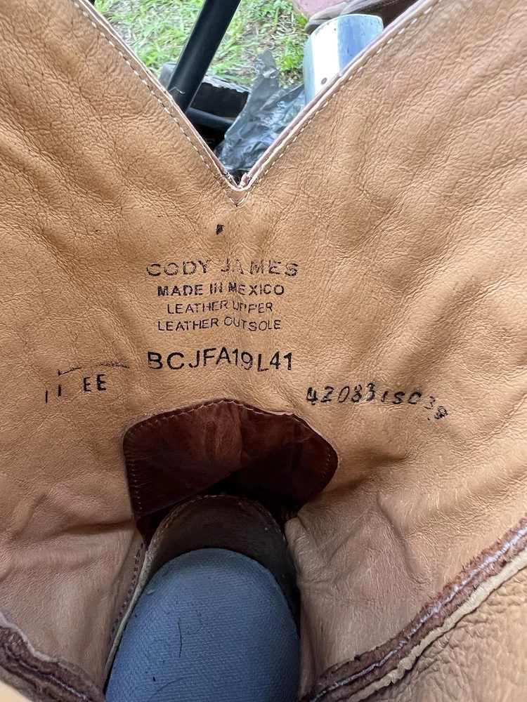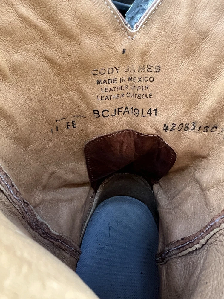 Up for sale is a . Cody James Diesel MEN'S BROWN Leather COWBOY WESTERN BOOTS SIZE 11 EE . IT'S used condition with scuffs, scratches, and some stains on the exterior which is normal for being preowned , that might come out . BOOT TREES ARE NOT INCLUDED. Please double click on the pictures to get a closer view before bidding. Take a look at my other listings for more fine items. If you have any questions or complaints please feel free to contact me via eBay email. Happy Bidding...