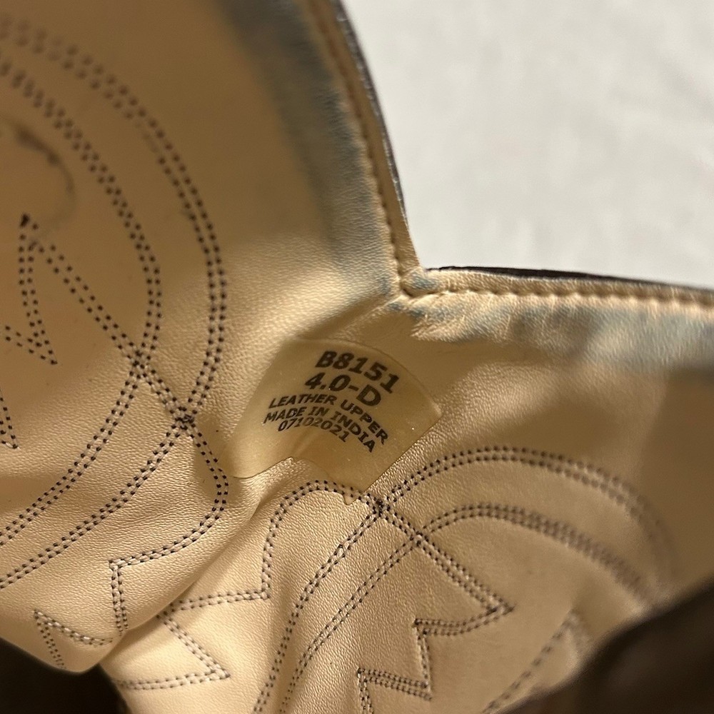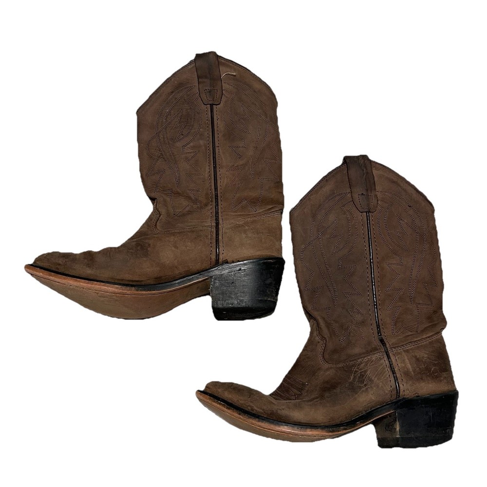 Brand: Cody James Style: Western / Cowboy Boots Model: B8151 Size: Boys / Youth 4.0 Width: D (standard) Color: Brown Material: Leather upper Sole: Leather sole with rubber heel cap Toe: Pointed western toe Heel: Western stacked heel Classic Cody James western boots featuring genuine leather construction and traditional stitching. Solid everyday boots with authentic cowboy style — great for casual wear, rodeo, or dress-up.