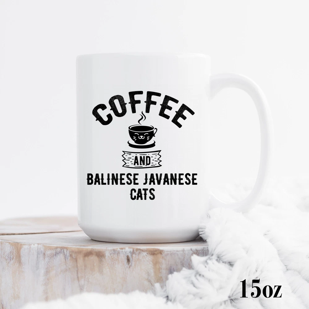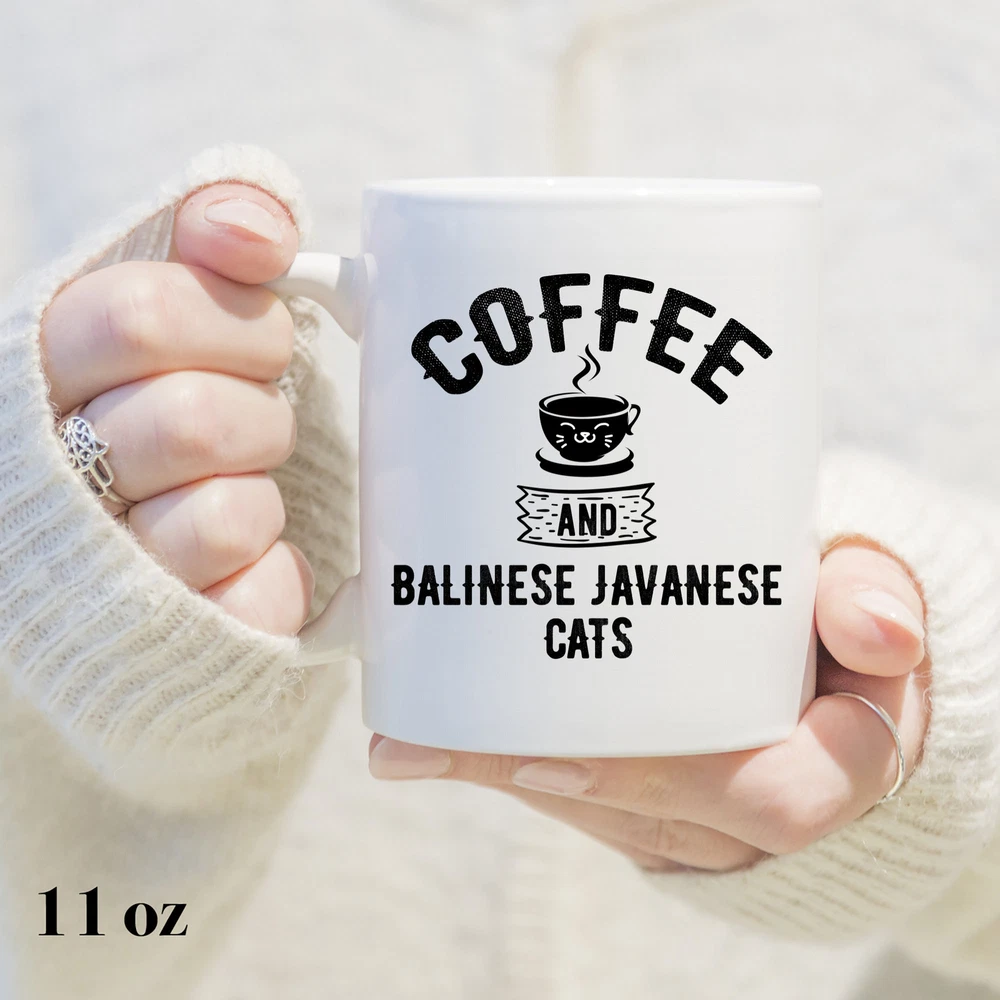 Coffee And Balinese Javanese Cats Mug Balinese Cat Lover Javanese Cat Mom Product Details.. This high quality 11oz. ceramic white mug has a premium hard coat that provides crisp and vibrant color reproduction sure to last for years. Perfect for all hot & cold beverages. The highest quality printing possible is used. It will never fade no matter how many times you wash it. Material: 100% Ceramic. Print both sides. Dishwasher and Microwave Safe. High Gloss + Premium White Finish. Printed in the U.S.A. Personalized & Custom. We support personalized and custom mug to add custom, when placing an order, you can add notes to the "order note" in shipping address section. Also you can contact us directly via message. Shipping Info. Ready to ship in 1 to 2 business days, All products are made-to-order and proudly printed in the United States. Shipped by USPS and DHL, You will receive your order in 5-7 days. Replace & Refund. All products are defective during shipping broken, chipped will be replaced free of charge. You are not satisfied with the product, we will refund 100% money to you. If any other issues arise, please do not hesitate to message, we would be more than happy to assist you.